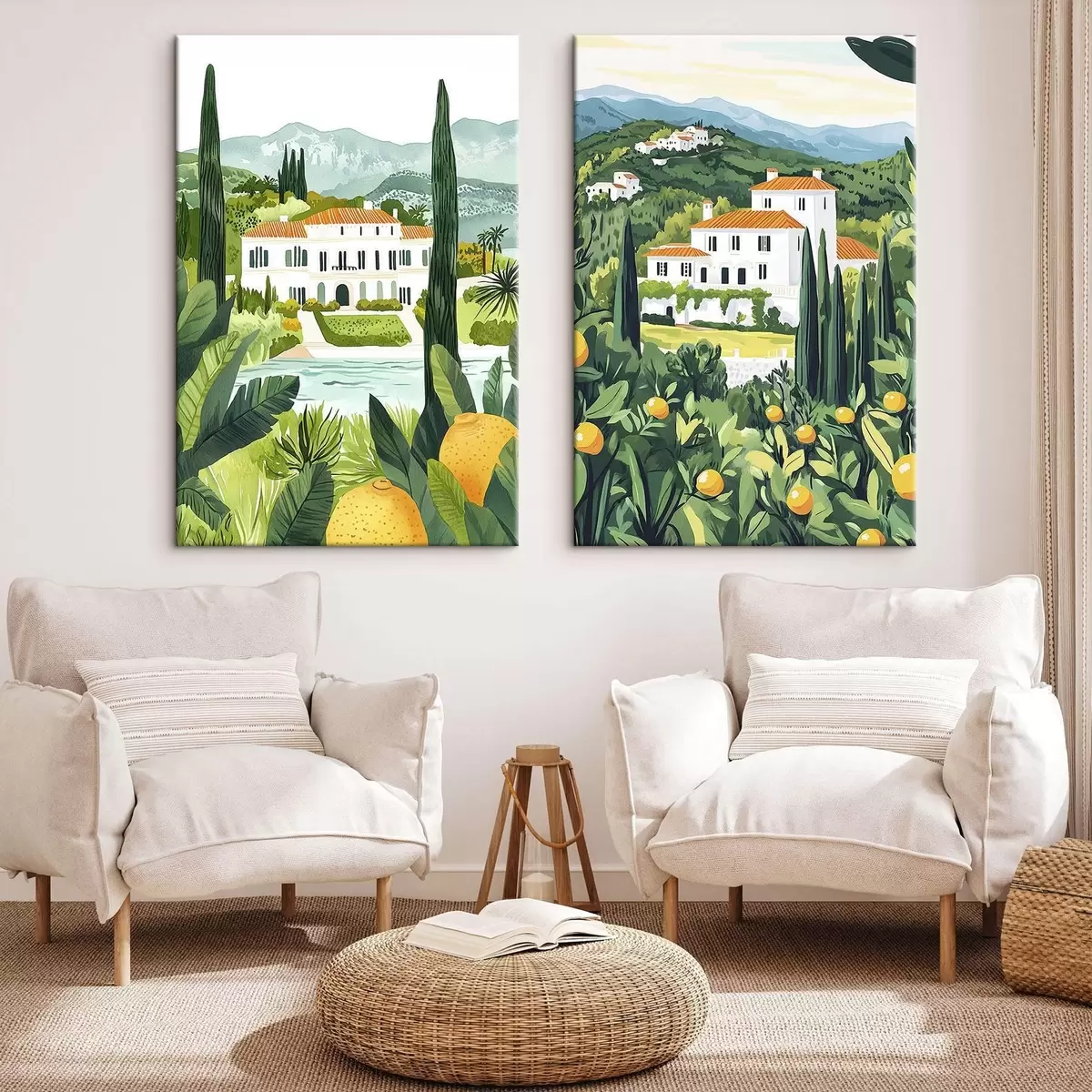 Gemälde Mediterrane Landschaften mit Bäumen und Häusern, Meeresküste, Spanien Art. m00450