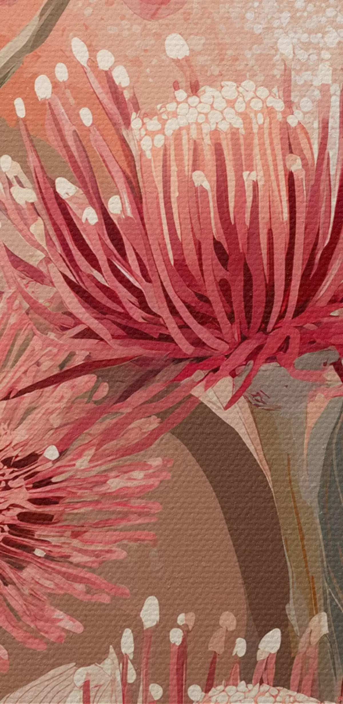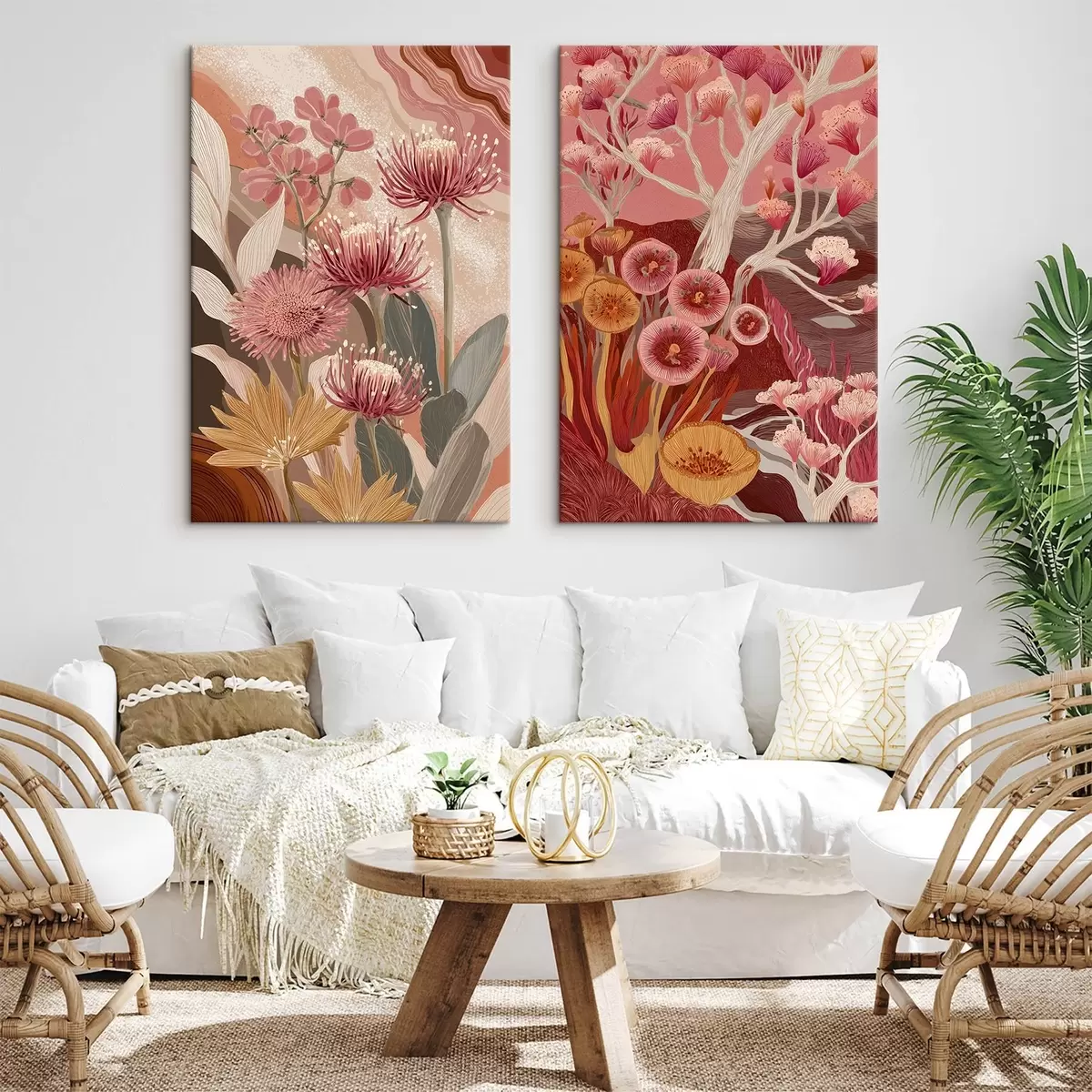 Gemälde Blumen im Boho-Stil, detaillierte Zeichnung, burgunderrote Farben Art. m00476