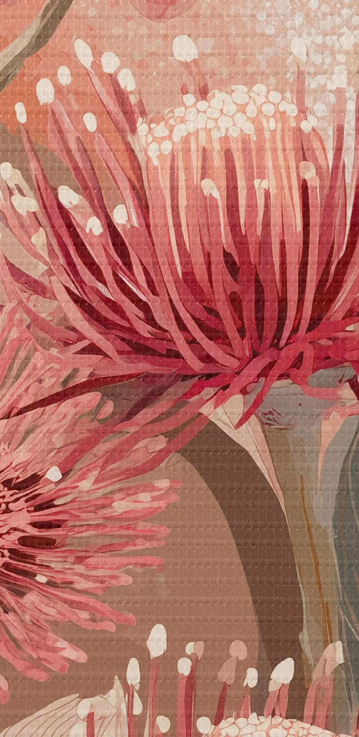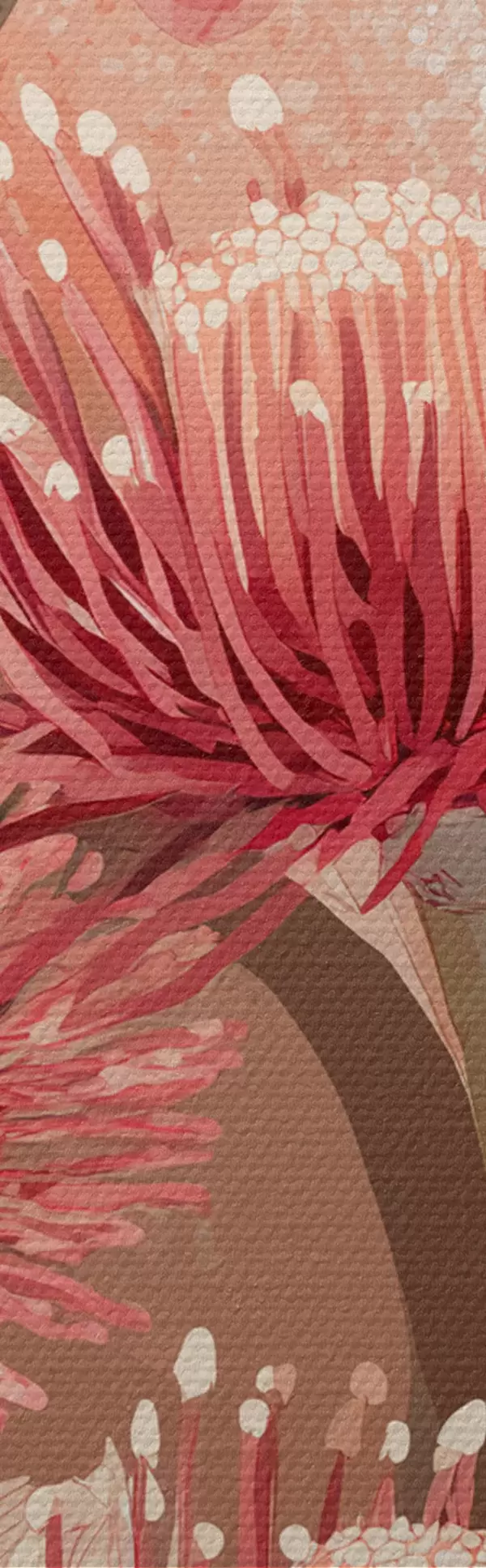 Fototapete Blumen im Boho-Stil, detaillierte Zeichnung, burgunderrote Farben m00476