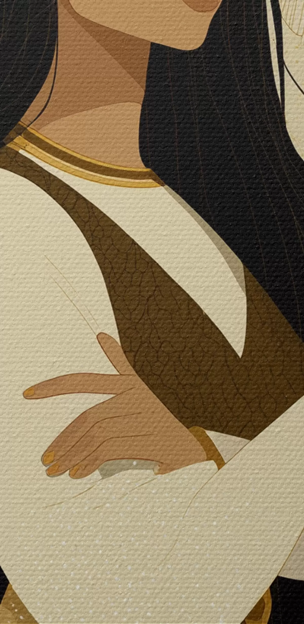 Um die Leinwand auf Keilrahmen zu spannen, ohne das Bild zu beschädigen, verwenden wir ein gespiegeltes Bild.