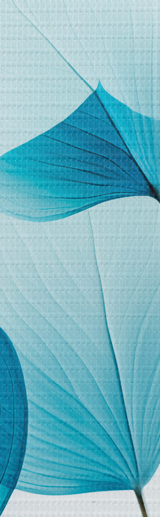 Fototapete Zweig mit durchscheinenden blauen Blättern, zarte Adern sichtbar, leichte und ruhige Komposition, minimalistische Ästhetik m00522