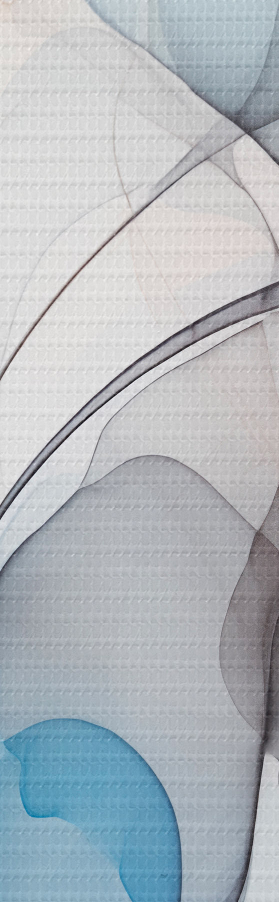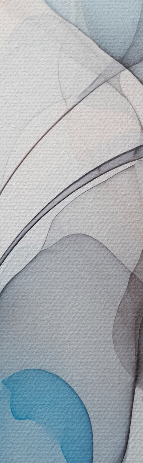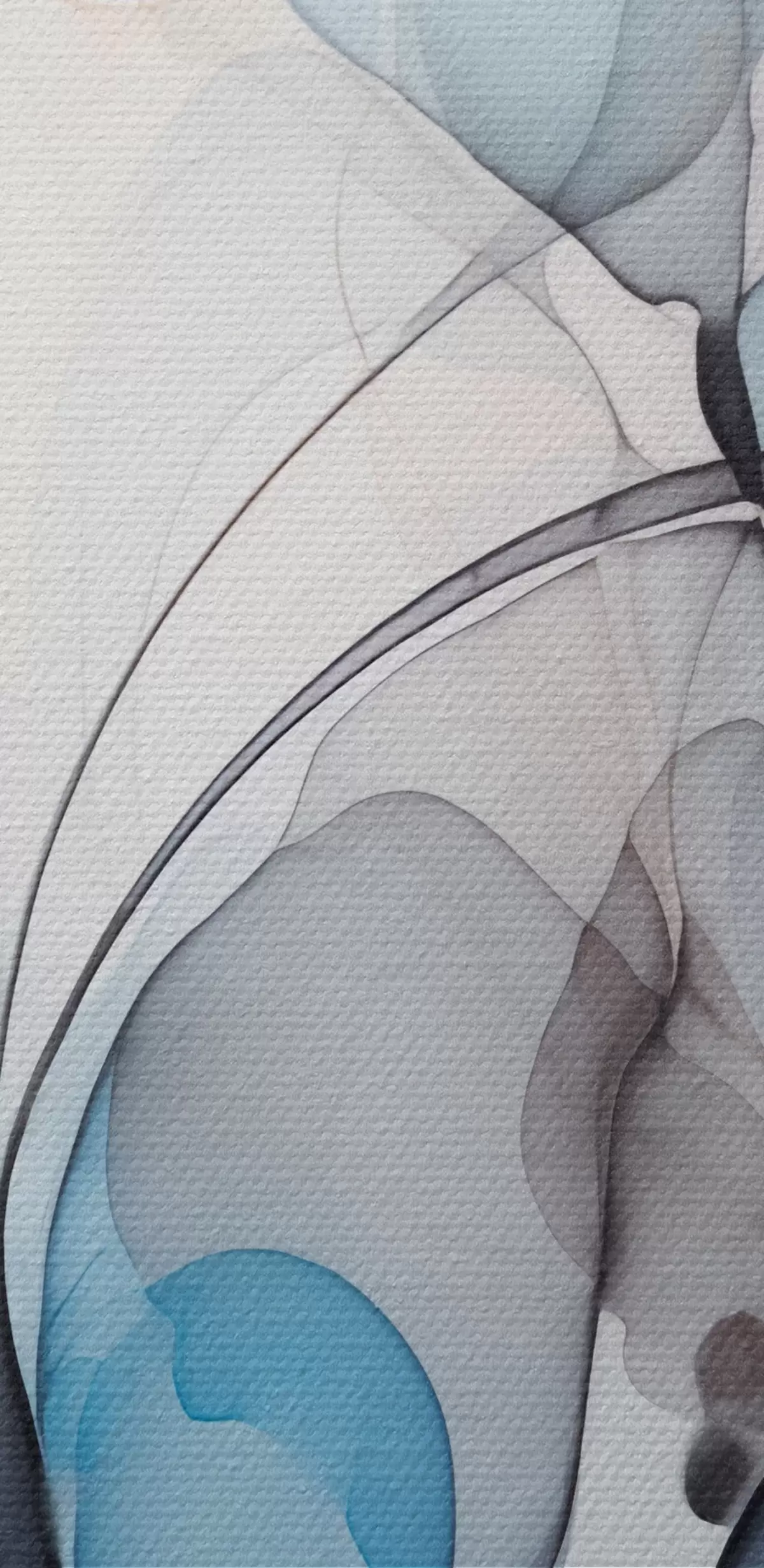 Gemälde Abstrakte Komposition mit fließenden Linien und durchscheinenden Blütenblättern in blauen, weißen und beigen Farbtönen, Alkoholtintenimitation Art. m00523