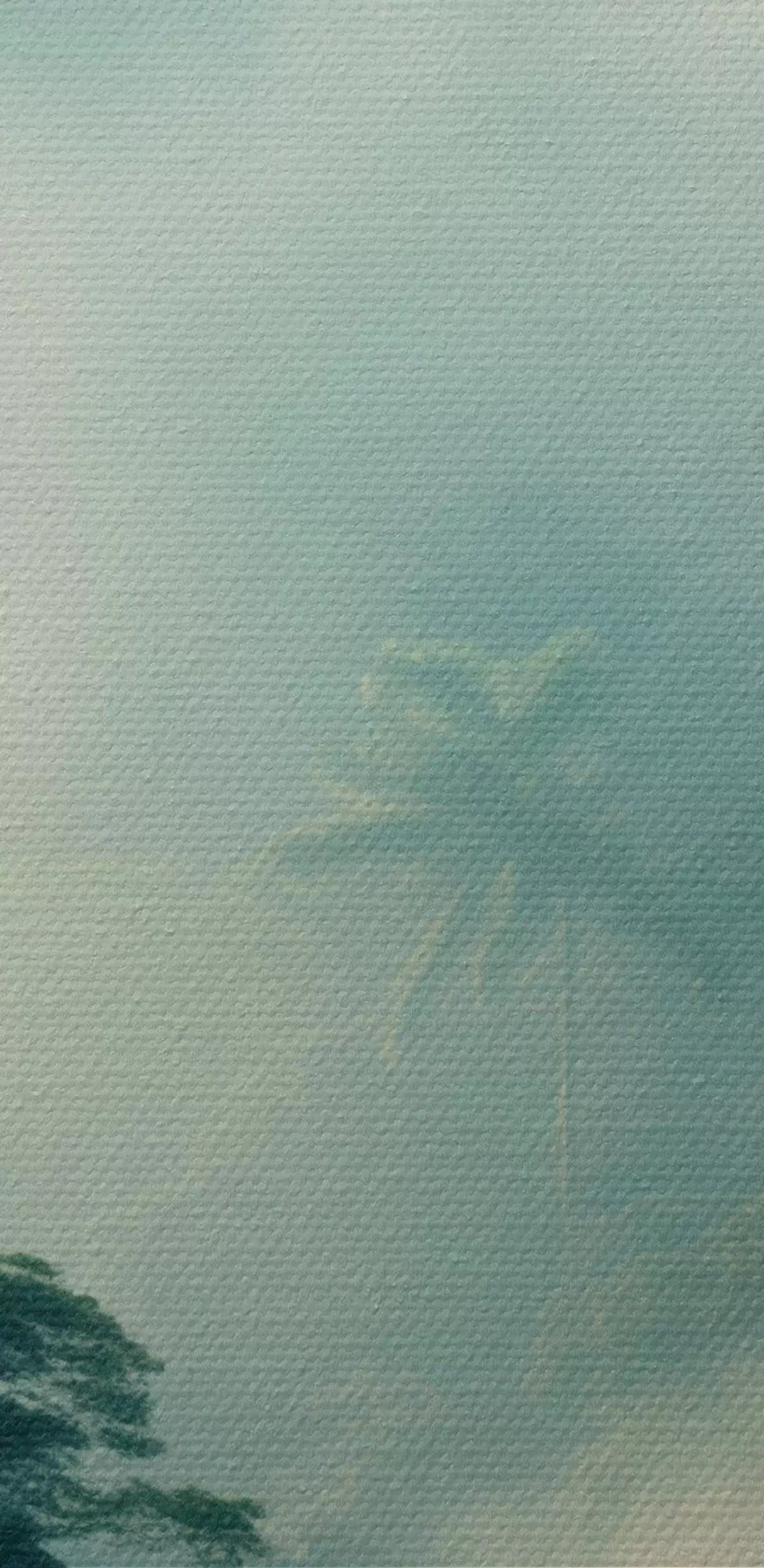 Gemälde Tropischer Regenwald mit üppig grünen Bäumen und einer dicken Nebelschicht, die eine stimmungsvolle Umgebung schafft Art. m00529
