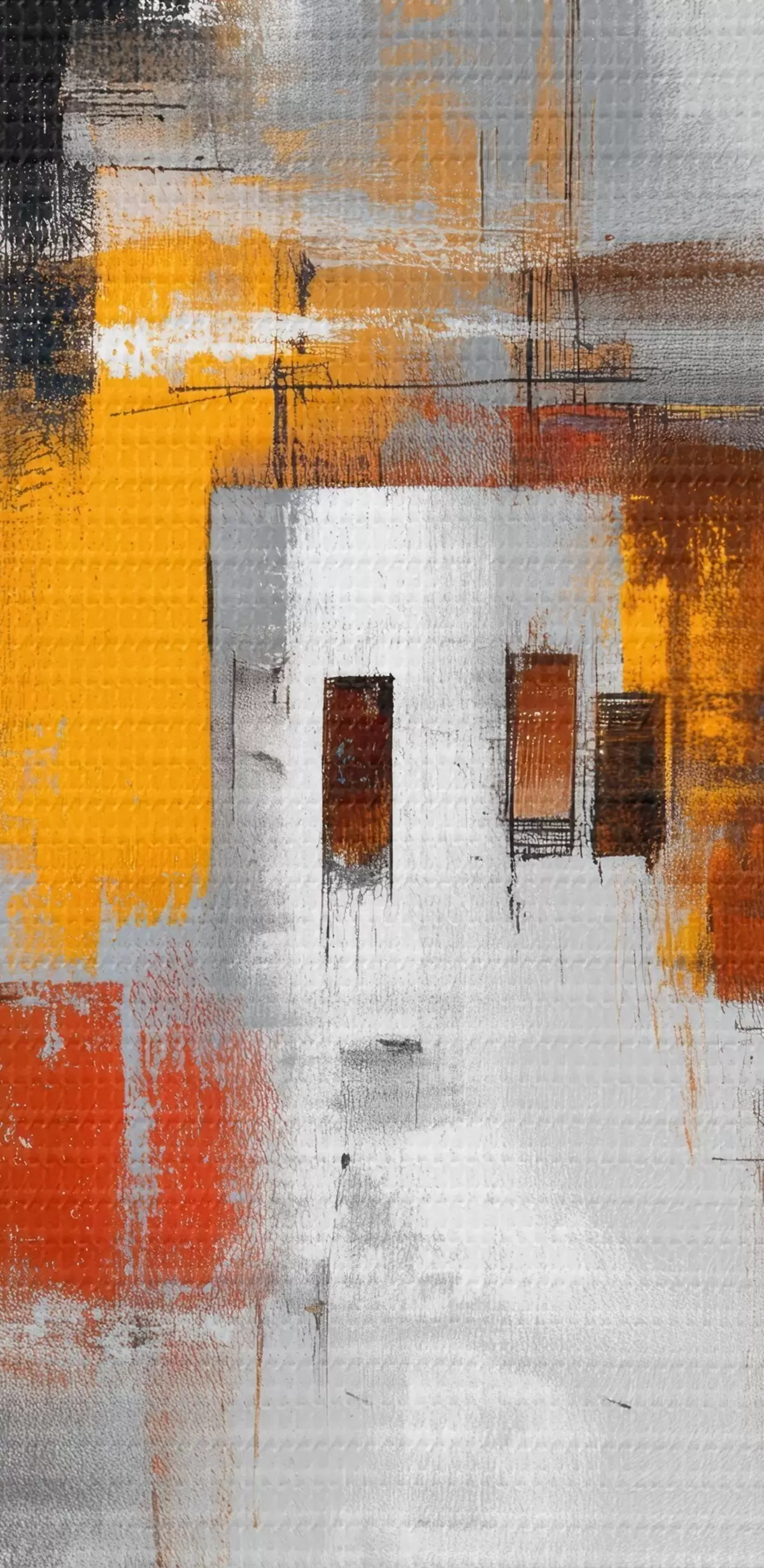 Gemälde Ausdrucksstarke Stadt: Kunstkomposition mit kontrastierenden Farben Art. m00566