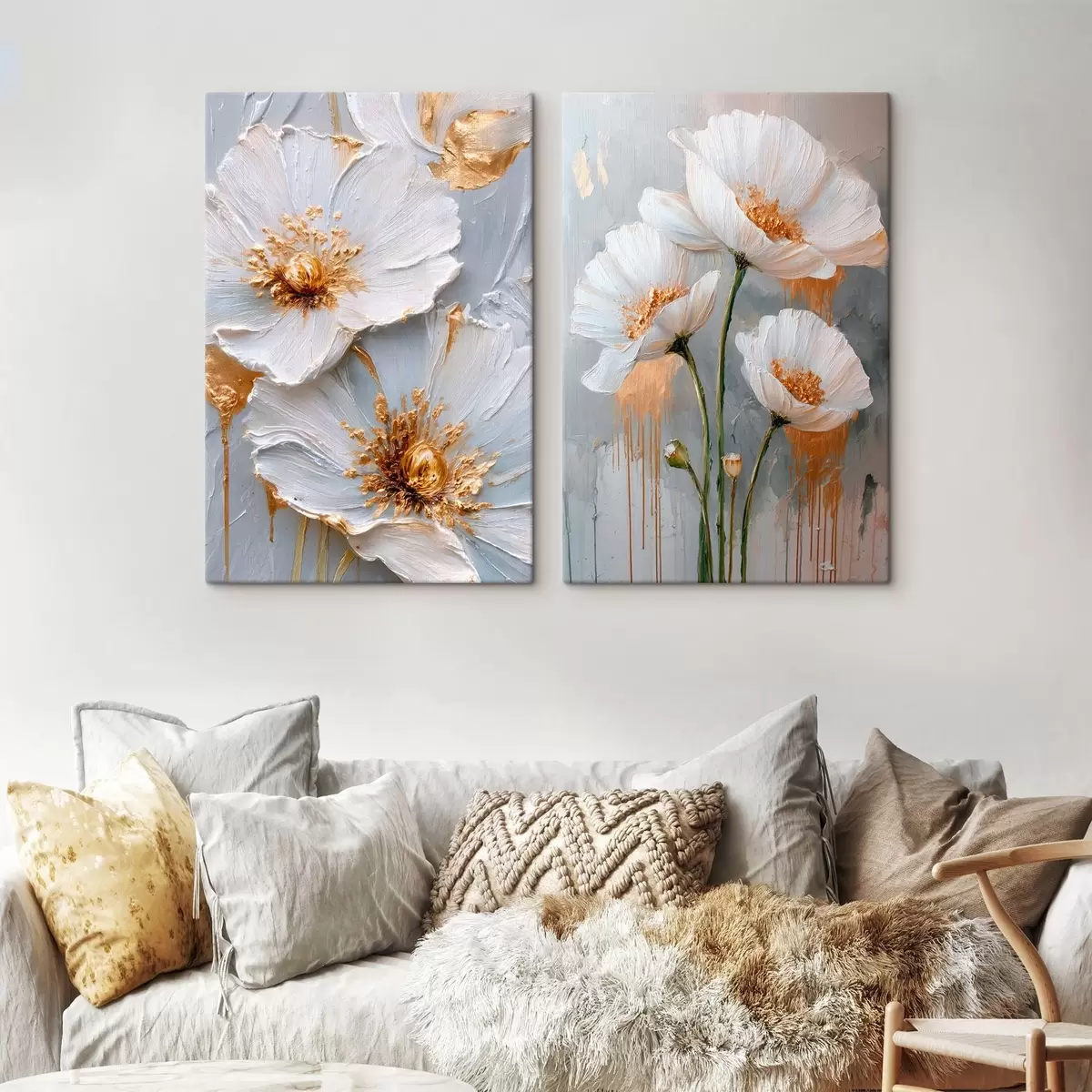 Gemälde Volumetrische Malerei von weißen Blumen mit gelben Akzenten auf grauem Hintergrund Art. m00568