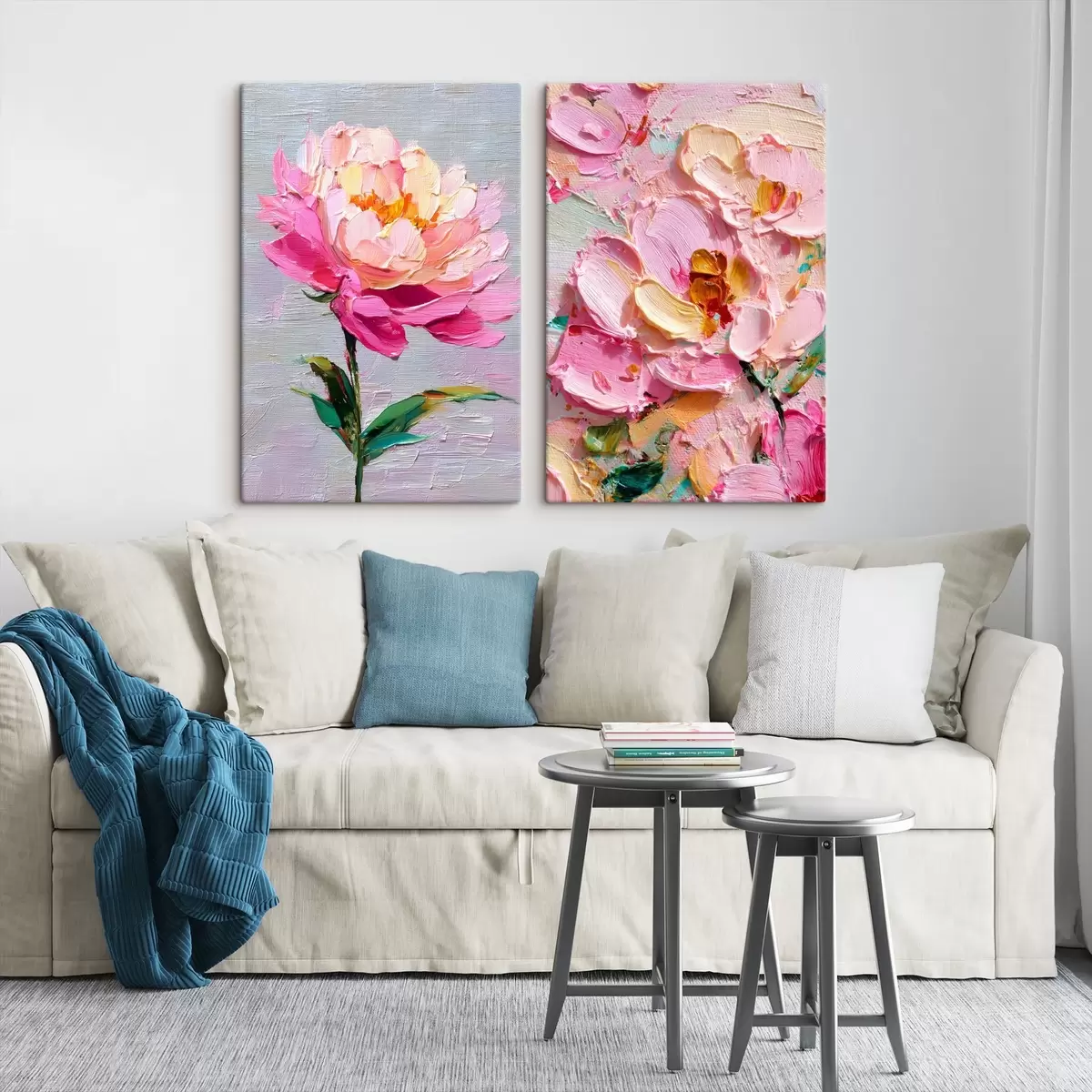 Gemälde Moderne Kunst mit rosa Blumen in volumetrischer Technik Art. m00572