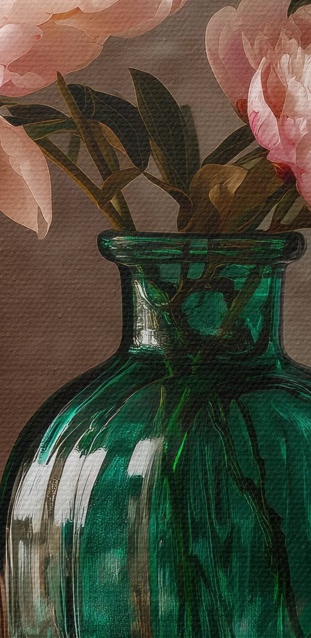 Gemälde Gepaart Zusammensetzung mit rosa Pfingstrosen in einer Vase und auf Leinwand Art. m00578