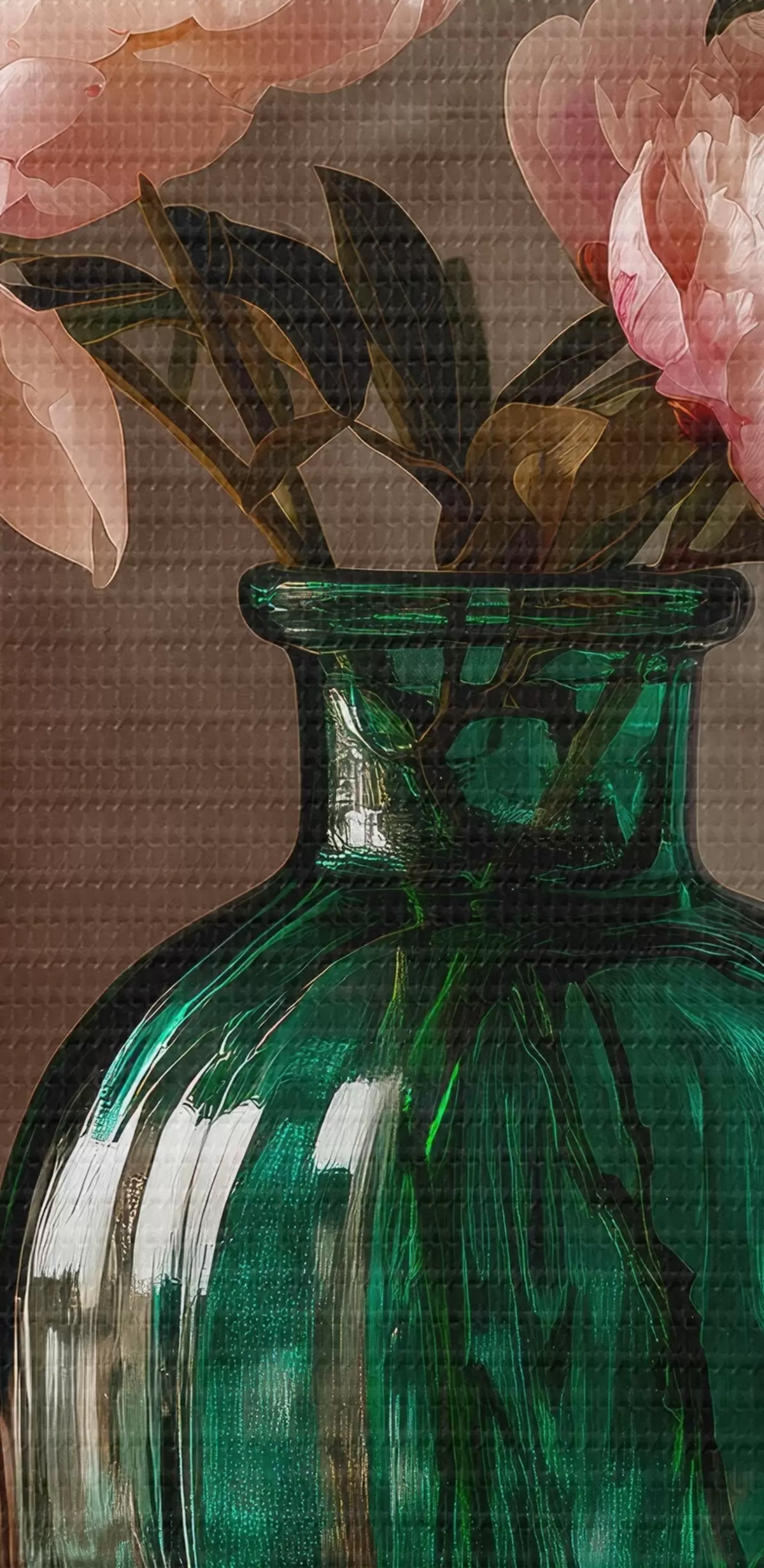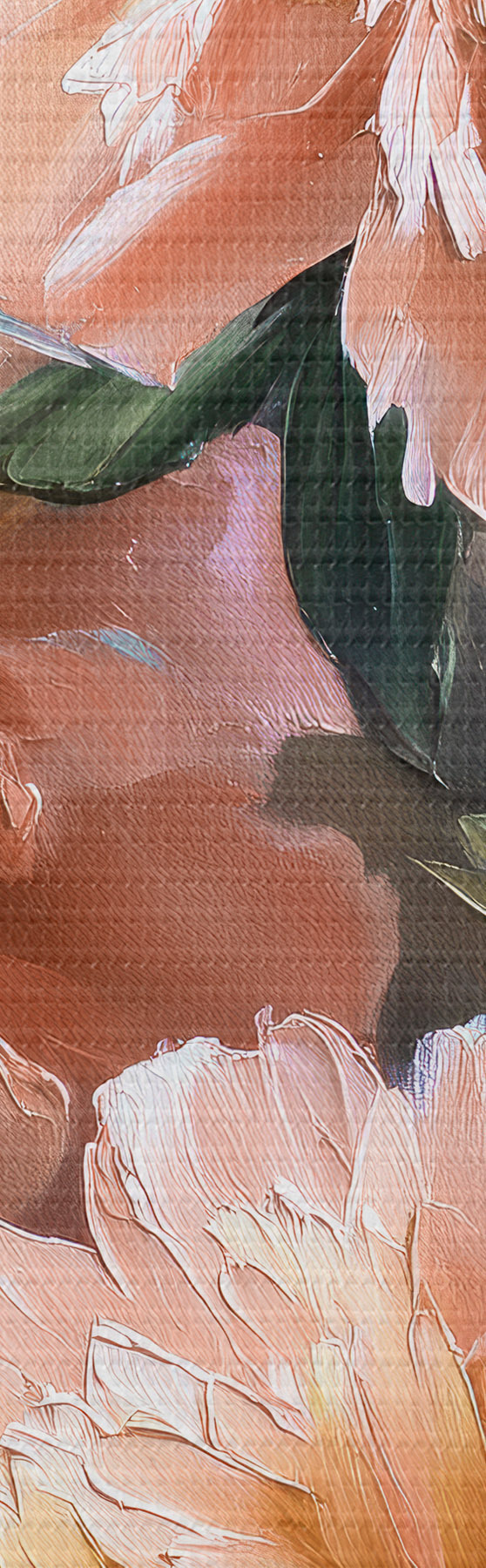 Fototapete Gepaart Zusammensetzung mit rosa Pfingstrosen in einer Vase und auf Leinwand m00578