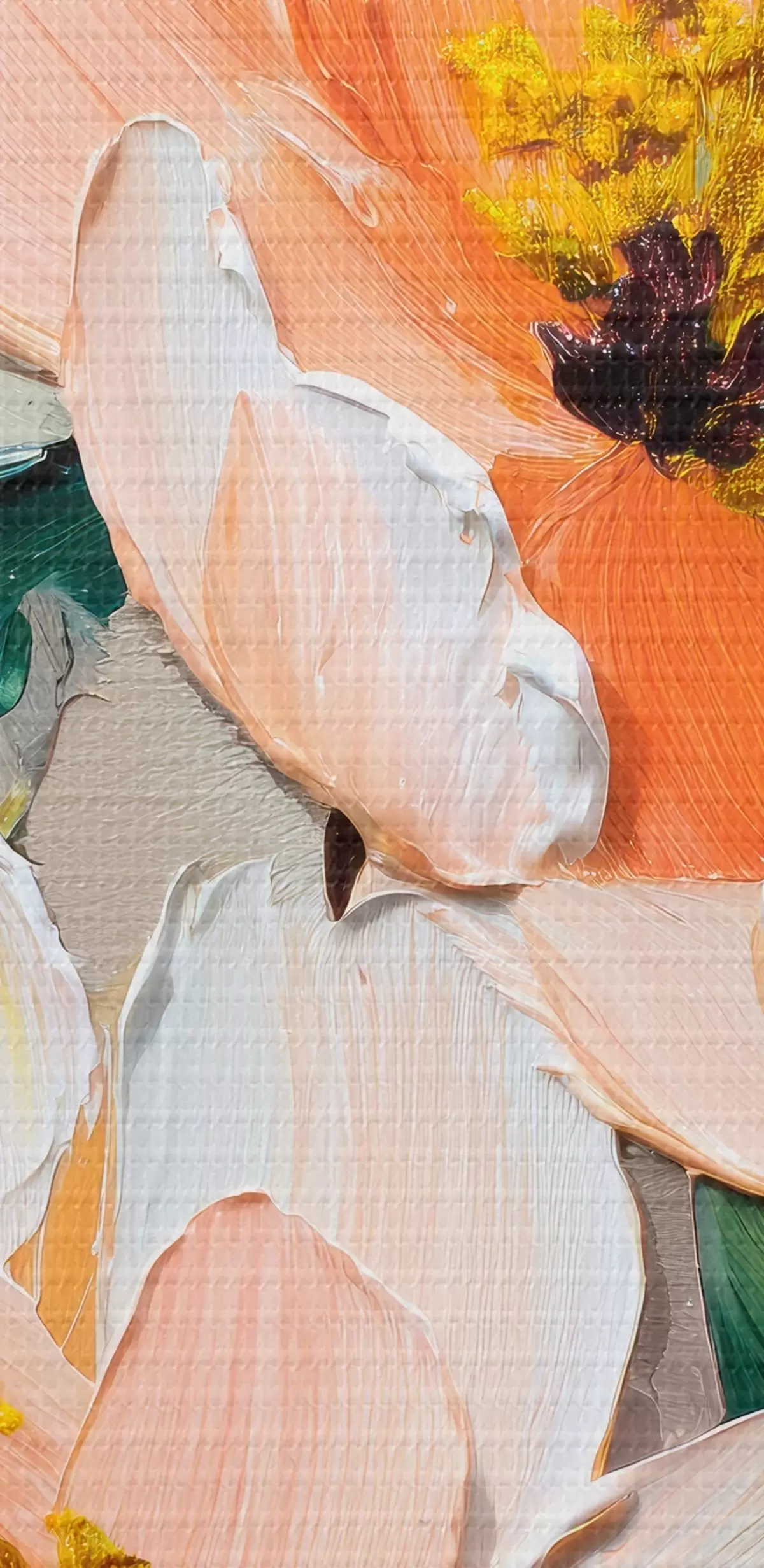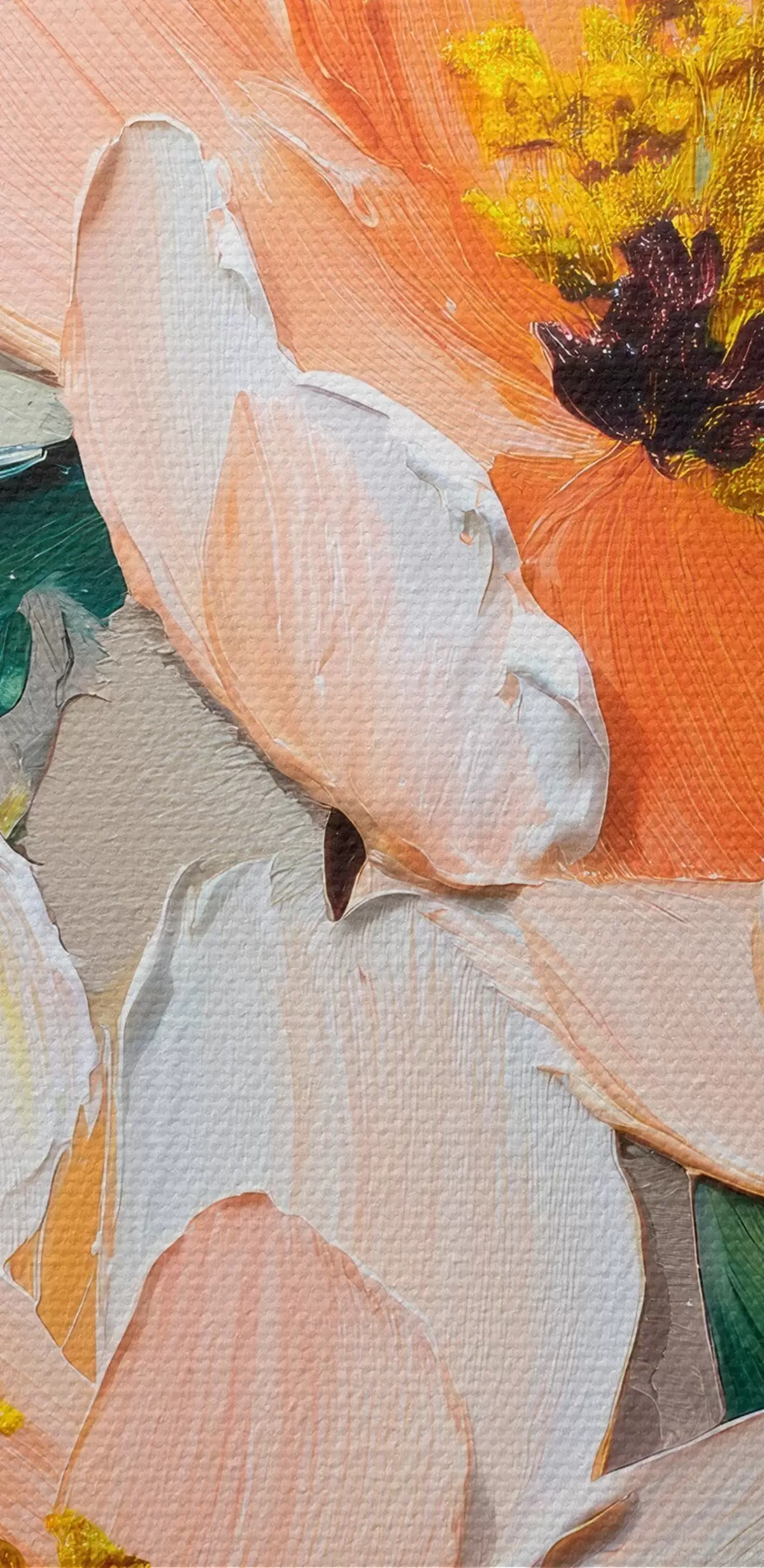 Fototapete Impasto-Malerei, die einen großen Blumenstrauß und einzelne Blumen kombiniert m00579