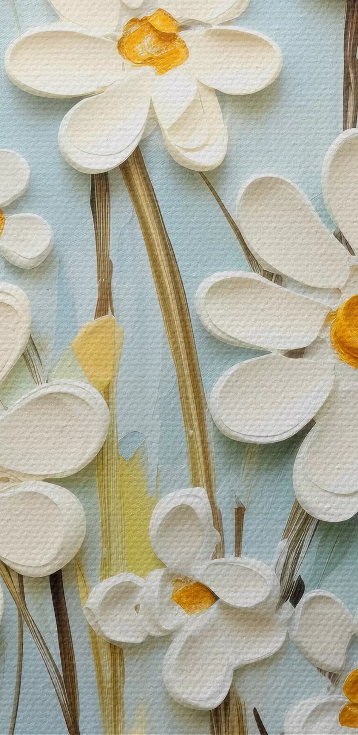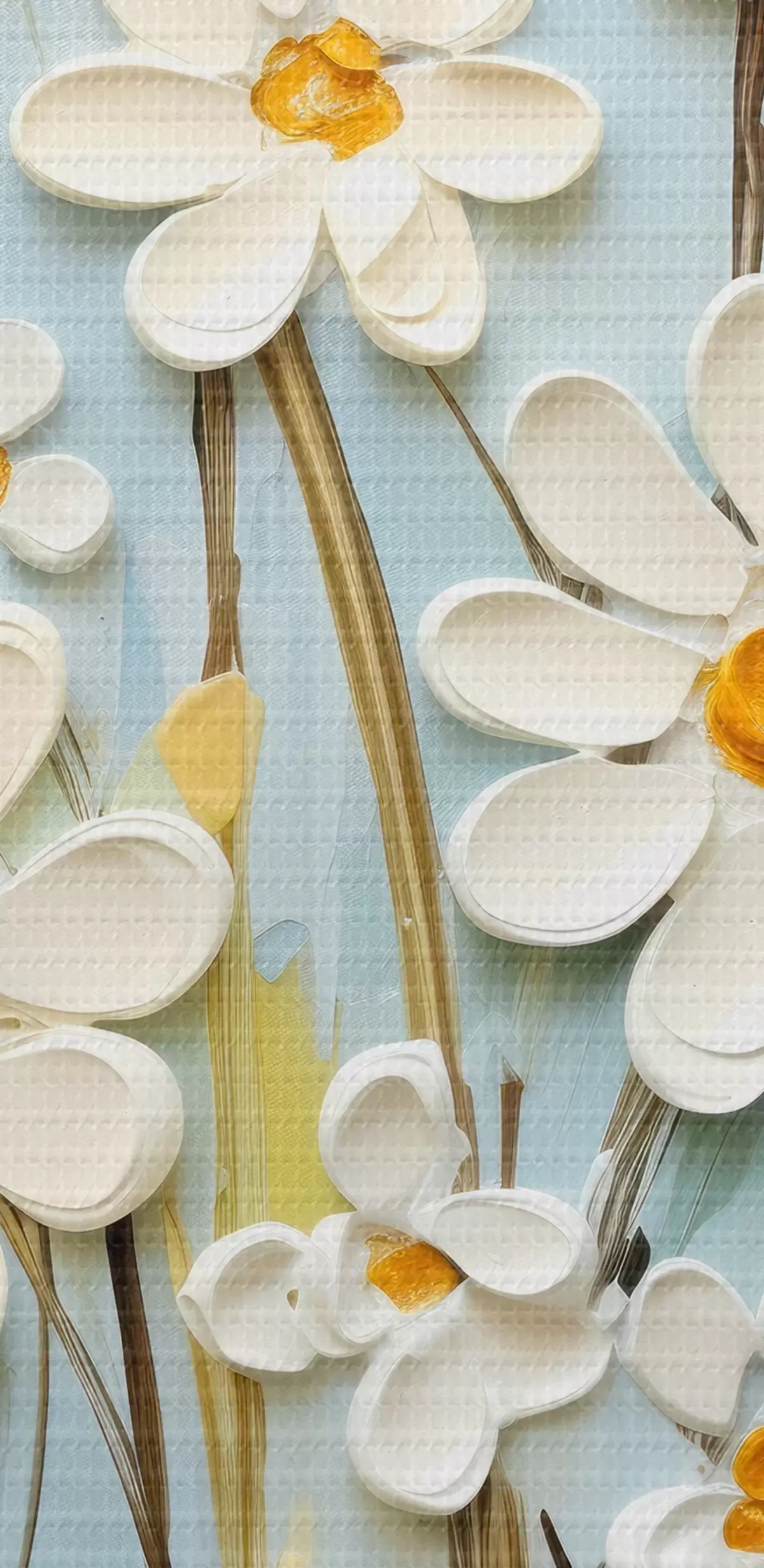Gemälde Sonnige Blumen: Kunstduett mit volumetrischen Gänseblümchen und gelben Akzenten Art. m00580