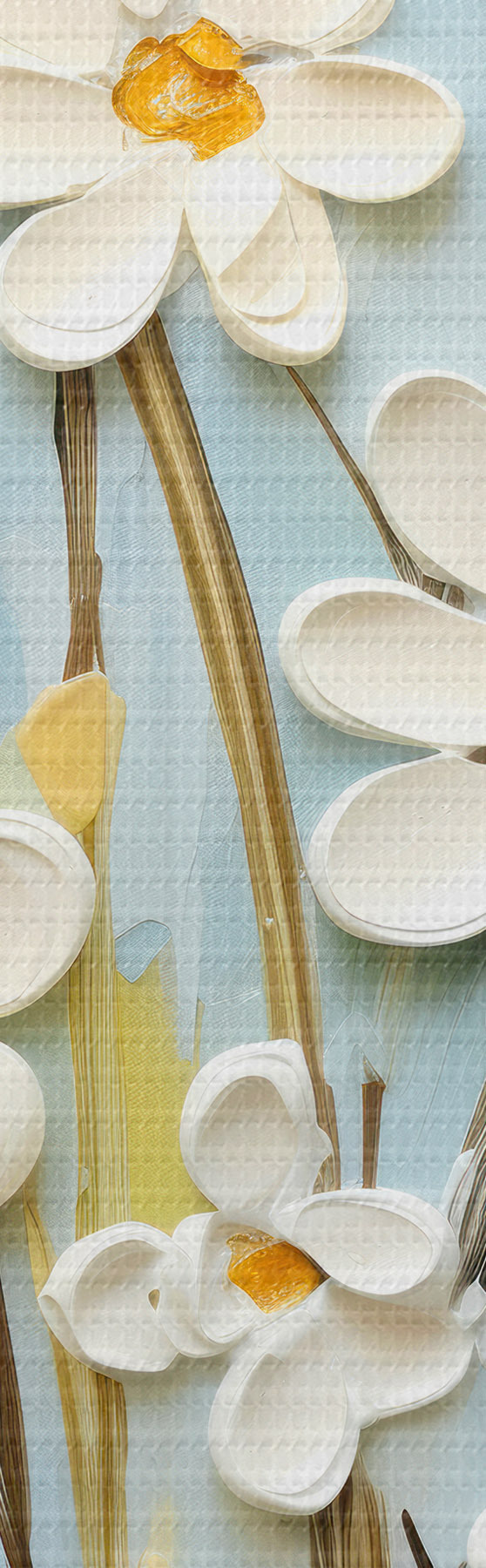 Fototapete Sonnige Blumen: Kunstduett mit volumetrischen Gänseblümchen und gelben Akzenten m00580