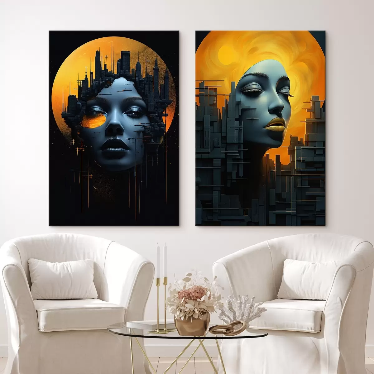 Gemälde Porträt eines Mädchens auf einem abstrakten Stadthintergrund Art. m00618
