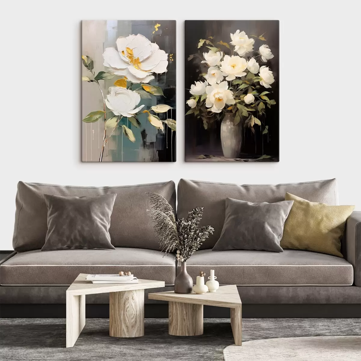 Gemälde Weiße Pfingstrosen auf dunklem Hintergrund: dekorative Komposition Art. m00634