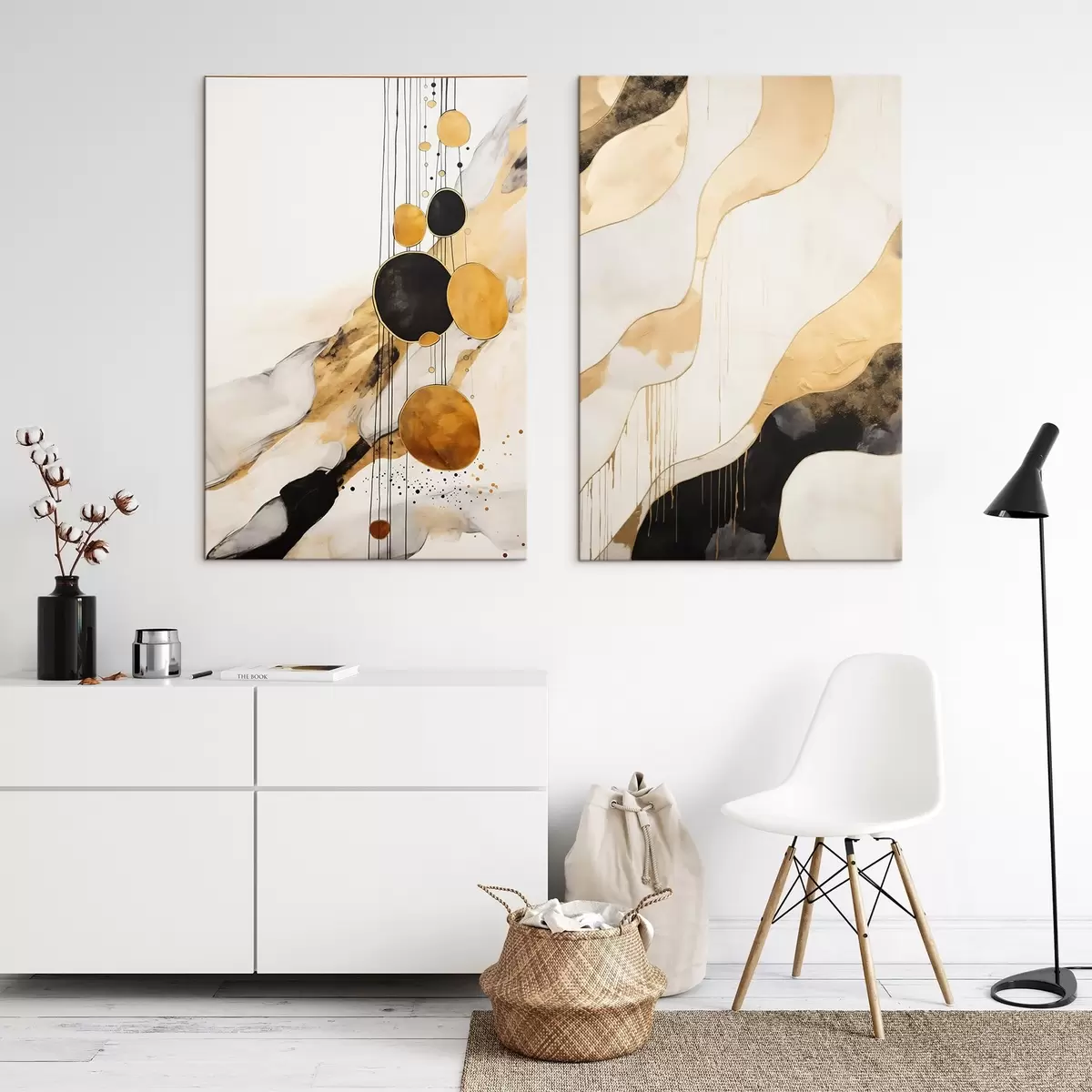 Gemälde Abstrakte Komposition mit schwarzen und orangefarbenen Kreisen Art. m00684