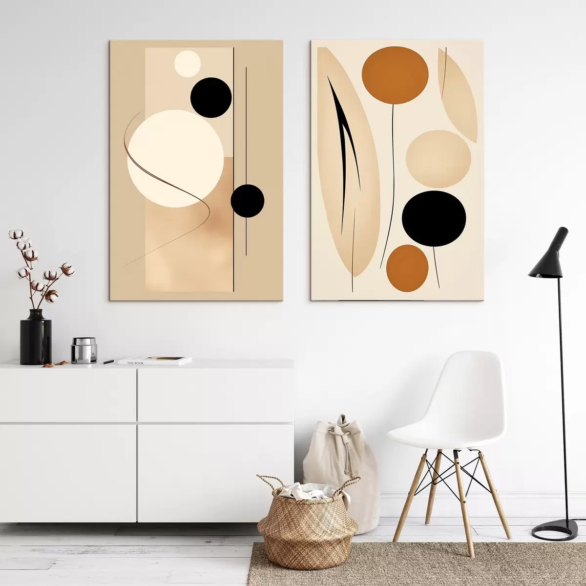 Gemälde Minimalistische geometrische Kreise in Beige- und Schwarztönen Art. m00685