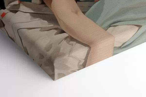 Um die Leinwand auf Keilrahmen zu spannen, ohne das Bild zu beschädigen, verwenden wir ein gespiegeltes Bild.