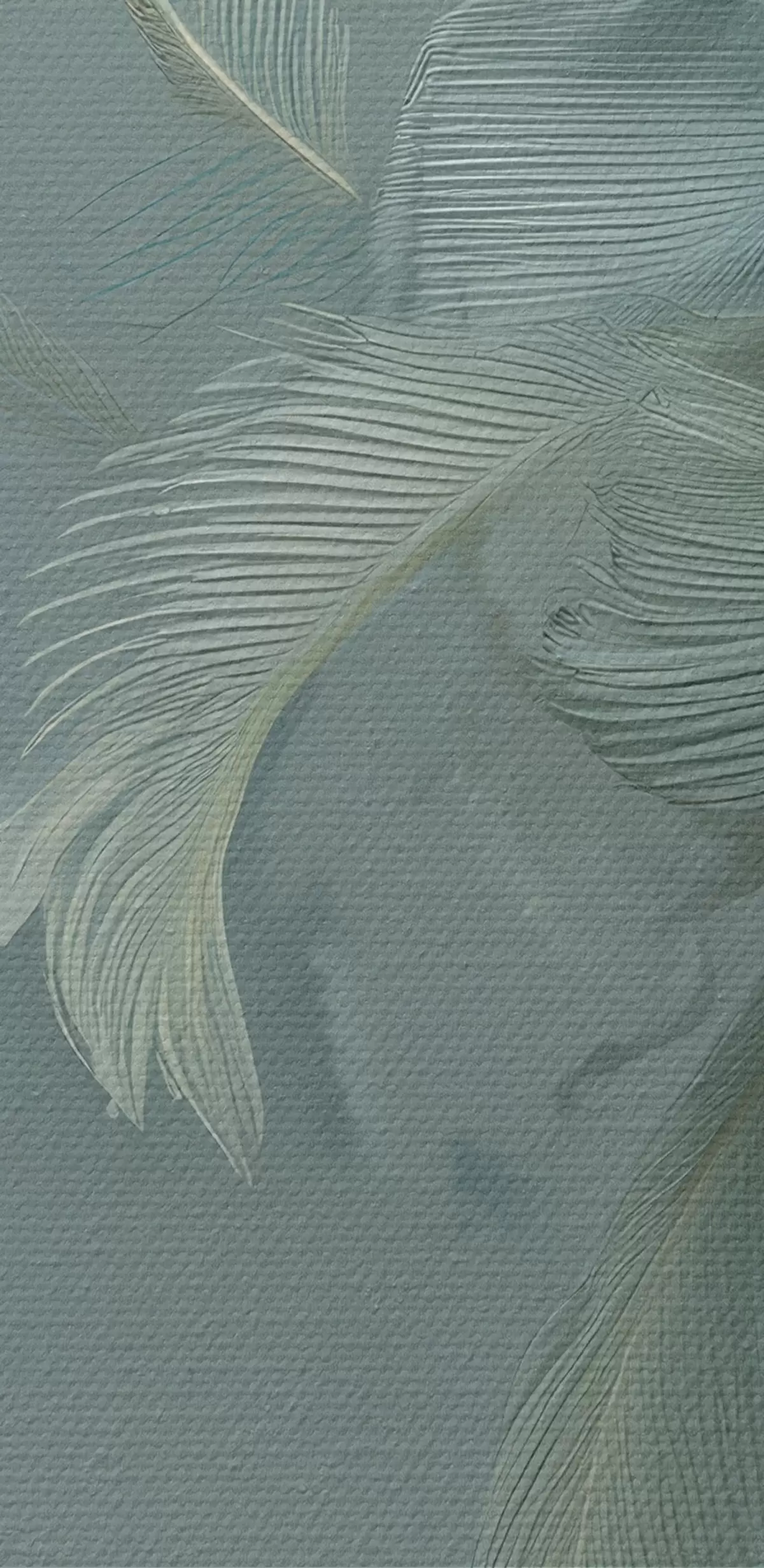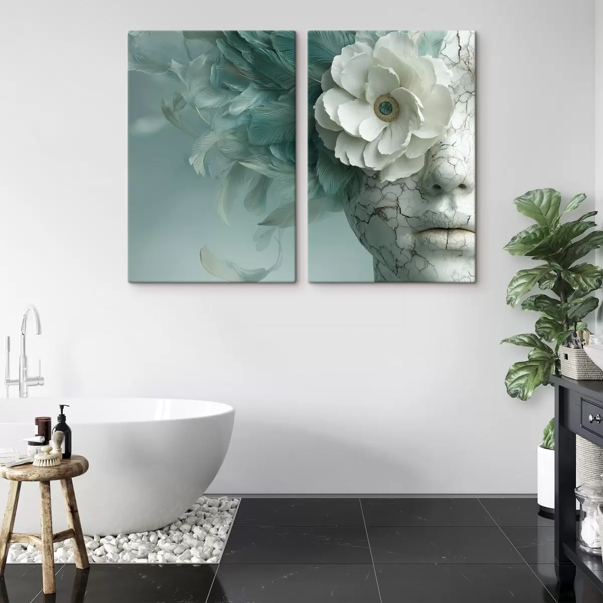 Gemälde marmorgesicht eines Mädchens mit einer Blume und Federn Art. m00699