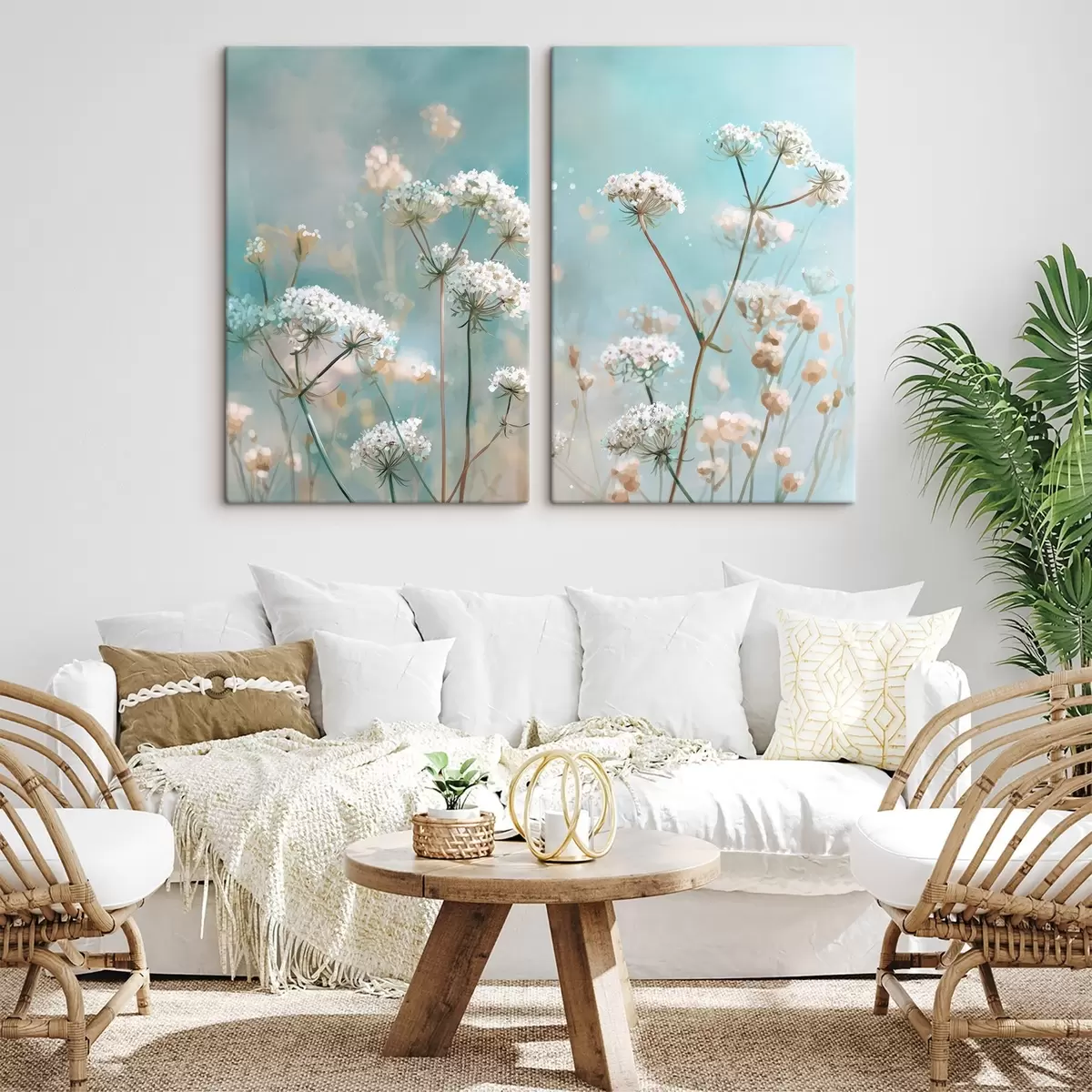 Gemälde Königin-Annes-Spitze-Blumen im Aquarellstil auf blauem Hintergrund Art. m00705