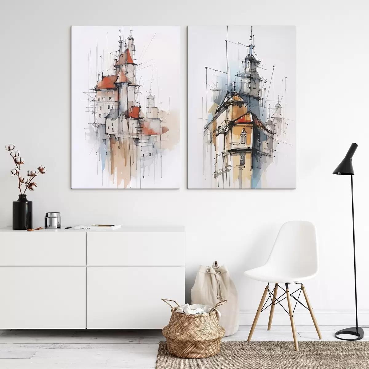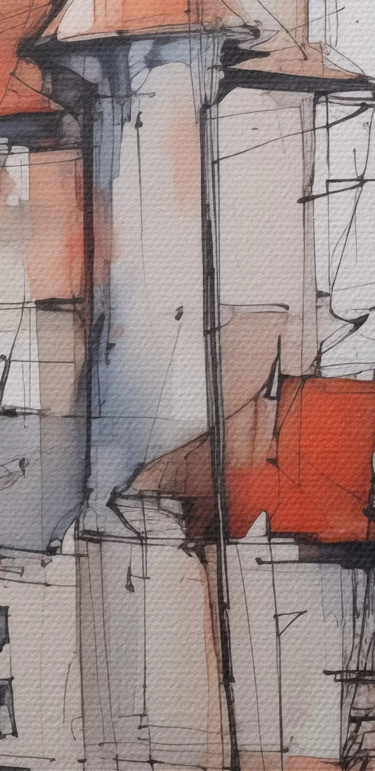 Fototapete Häuser-Imitation, Skizze und Aquarell m00725