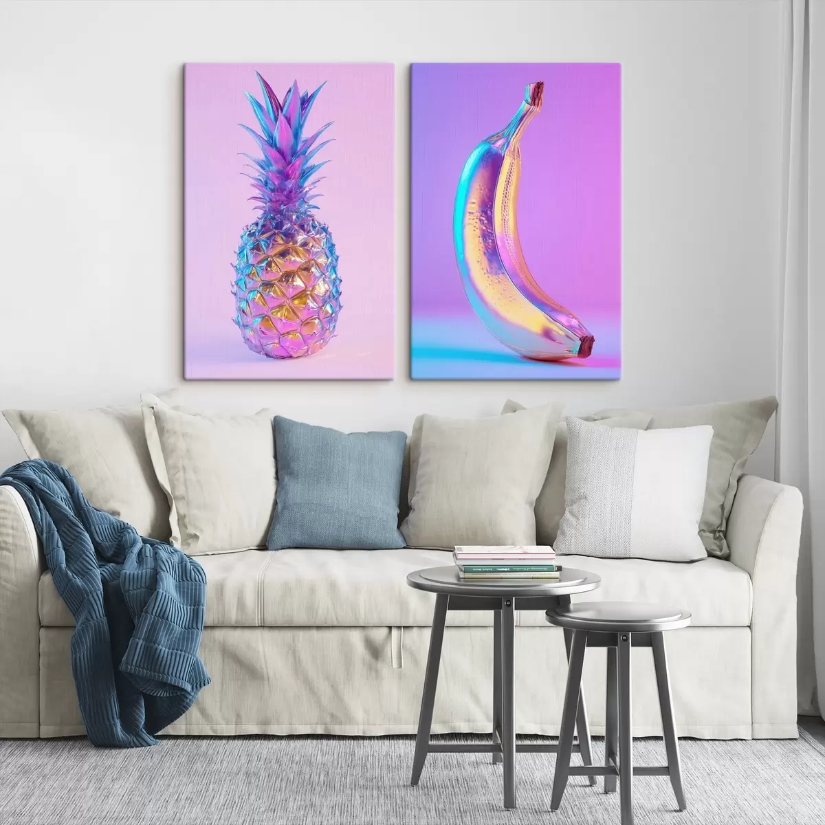 Gemälde leuchtend glänzende Ananas und Banane im Pop-Art-Stil Art. m00737