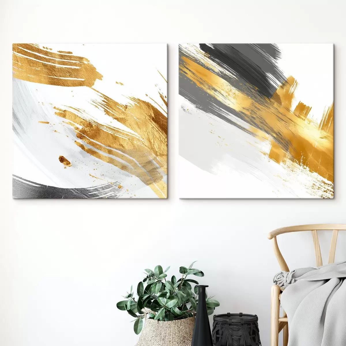 Gemälde Dynamische Abstraktion mit gelben und grauen Strichen Art. m00748