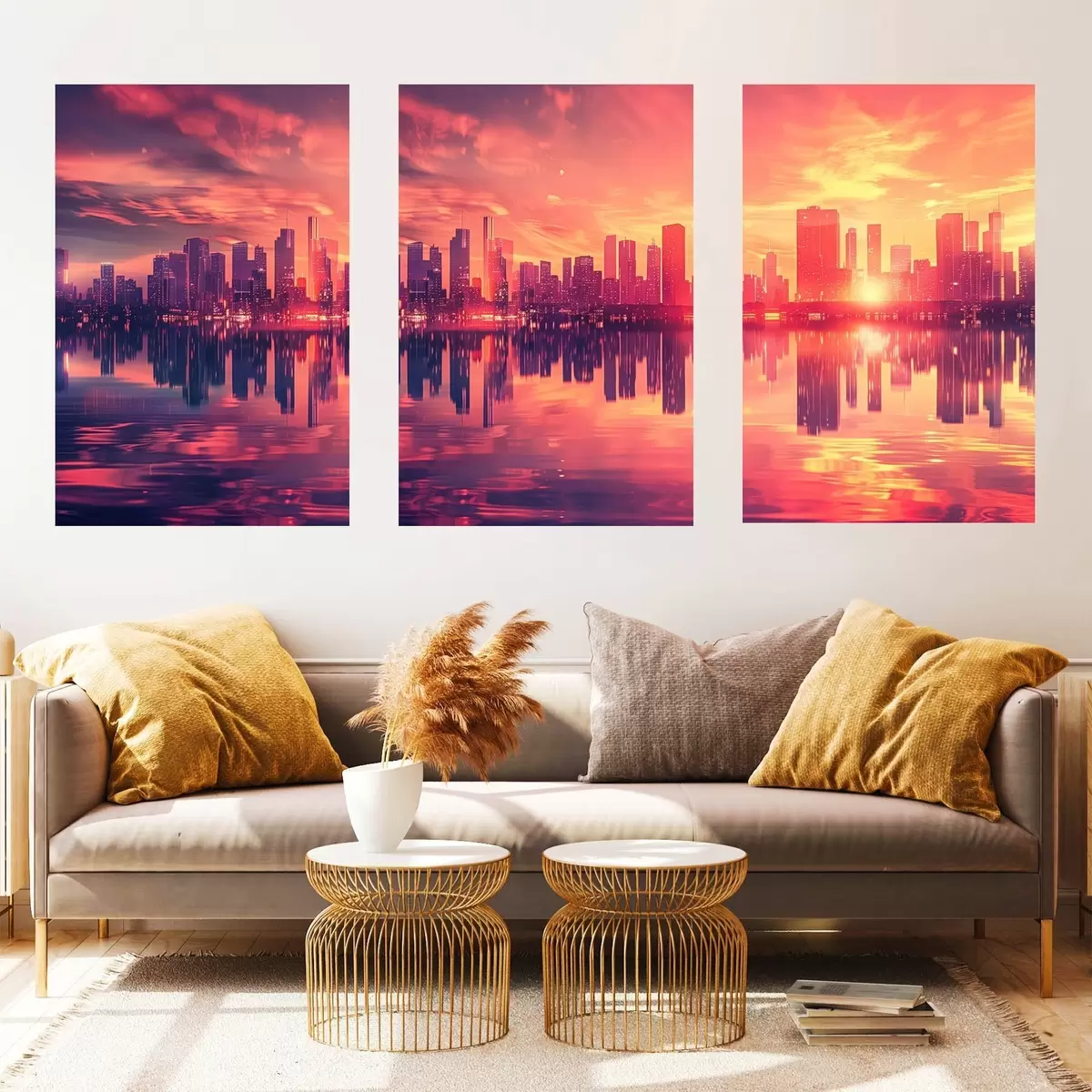 Gemälde Romantischer Sonnenuntergang mit einer modernen Stadt im Hintergrund Art. m00784