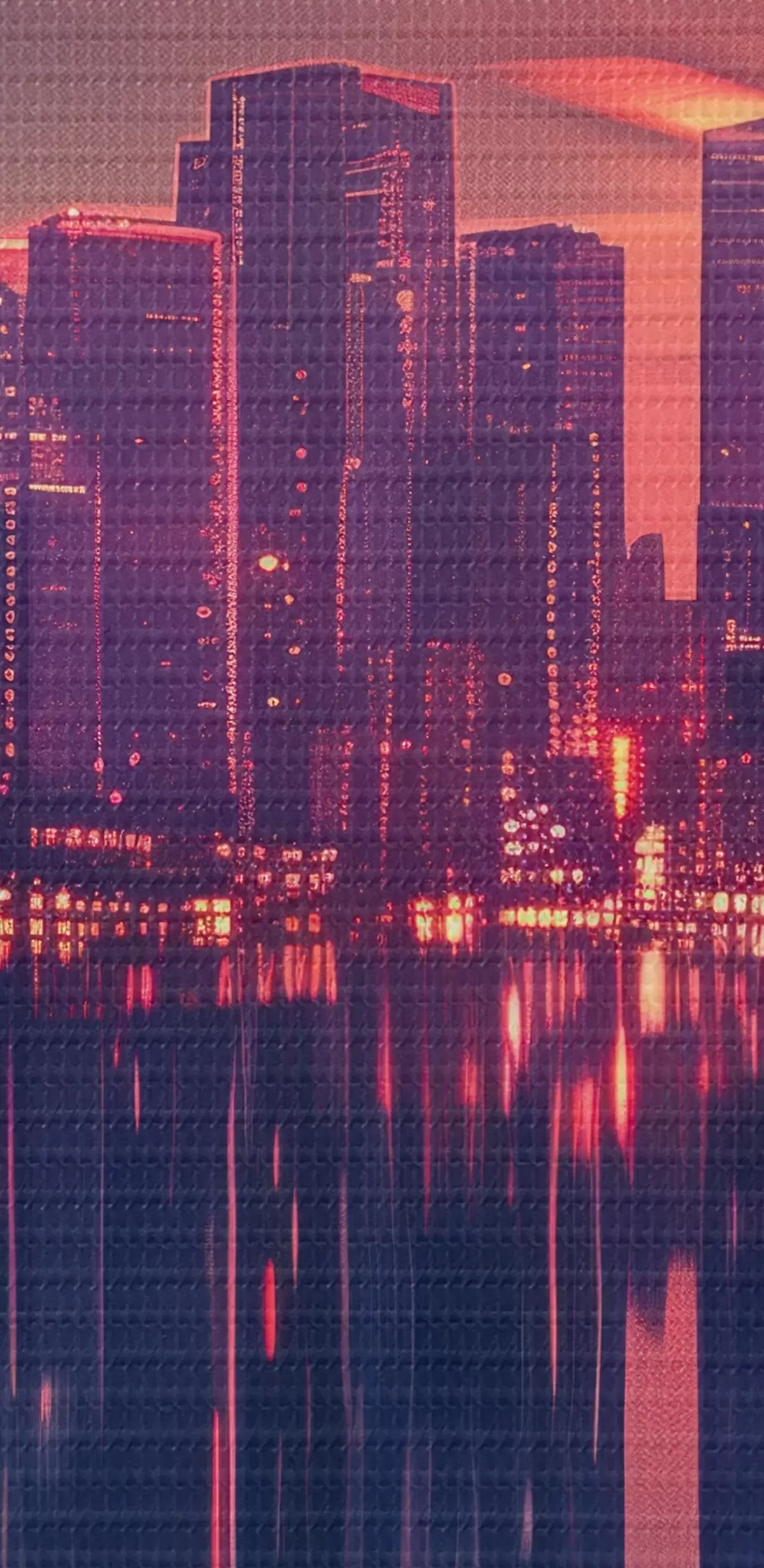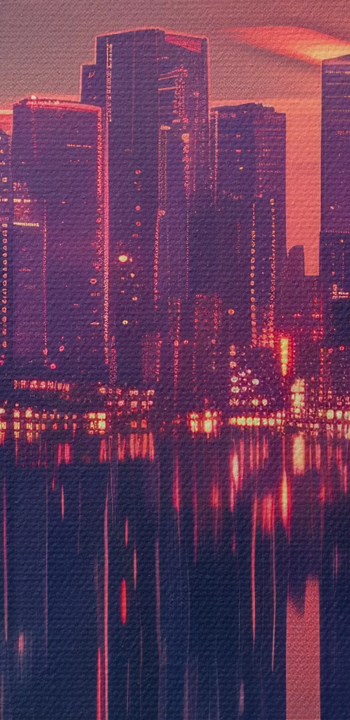 Gemälde Romantischer Sonnenuntergang mit einer modernen Stadt im Hintergrund Art. m00784
