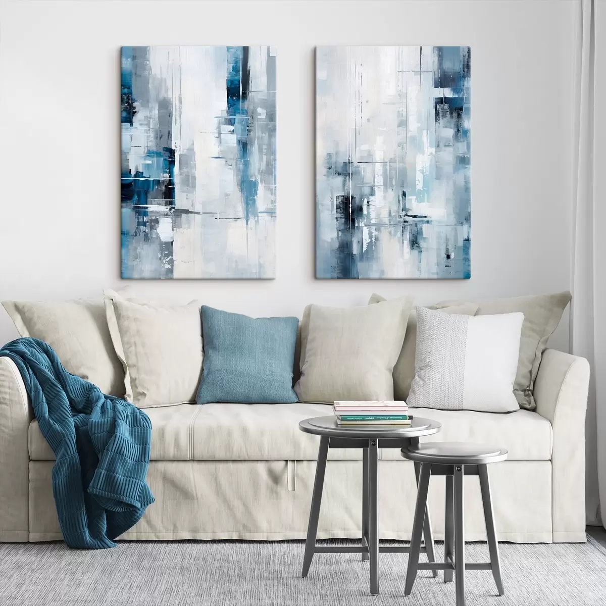 Gemälde Abstrakte Malerei-Imitation mit blauen, grauen und weißen Farben, vertikalen Linien und geometrischen Formen Art. m00819