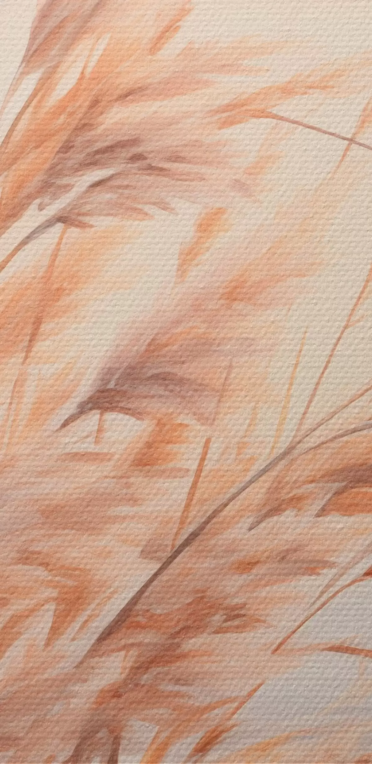 Gemälde Pampasgras mit pastelloranger Farbpalette, hellrosa Himmel, eine ruhige Landschaft Art. m00823