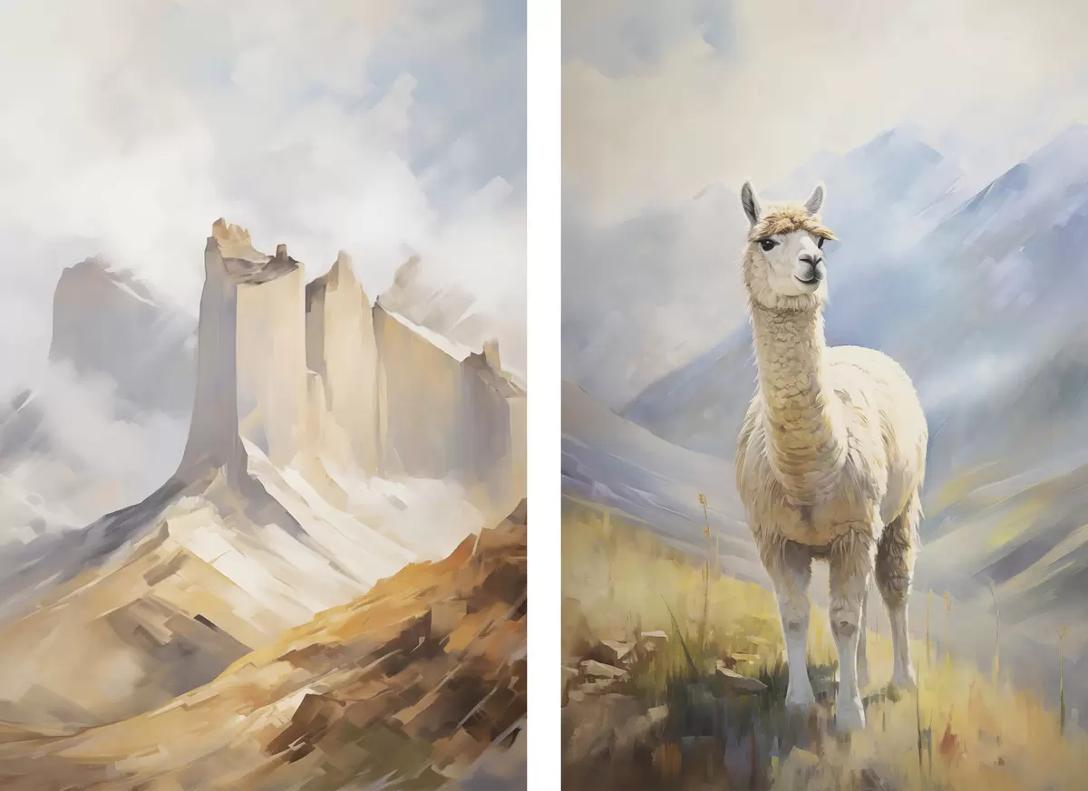 Gemälde Rocky Mountains und Lama Art. m00837