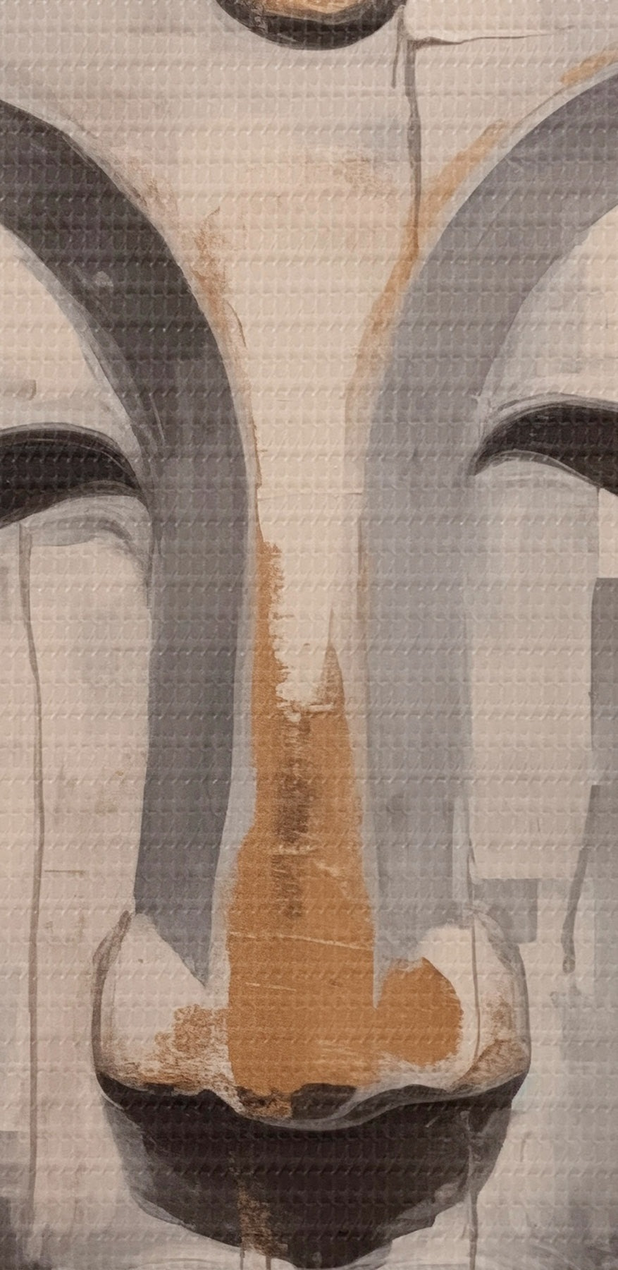 Um die Leinwand auf Keilrahmen zu spannen, ohne das Bild zu beschädigen, verwenden wir ein gespiegeltes Bild.