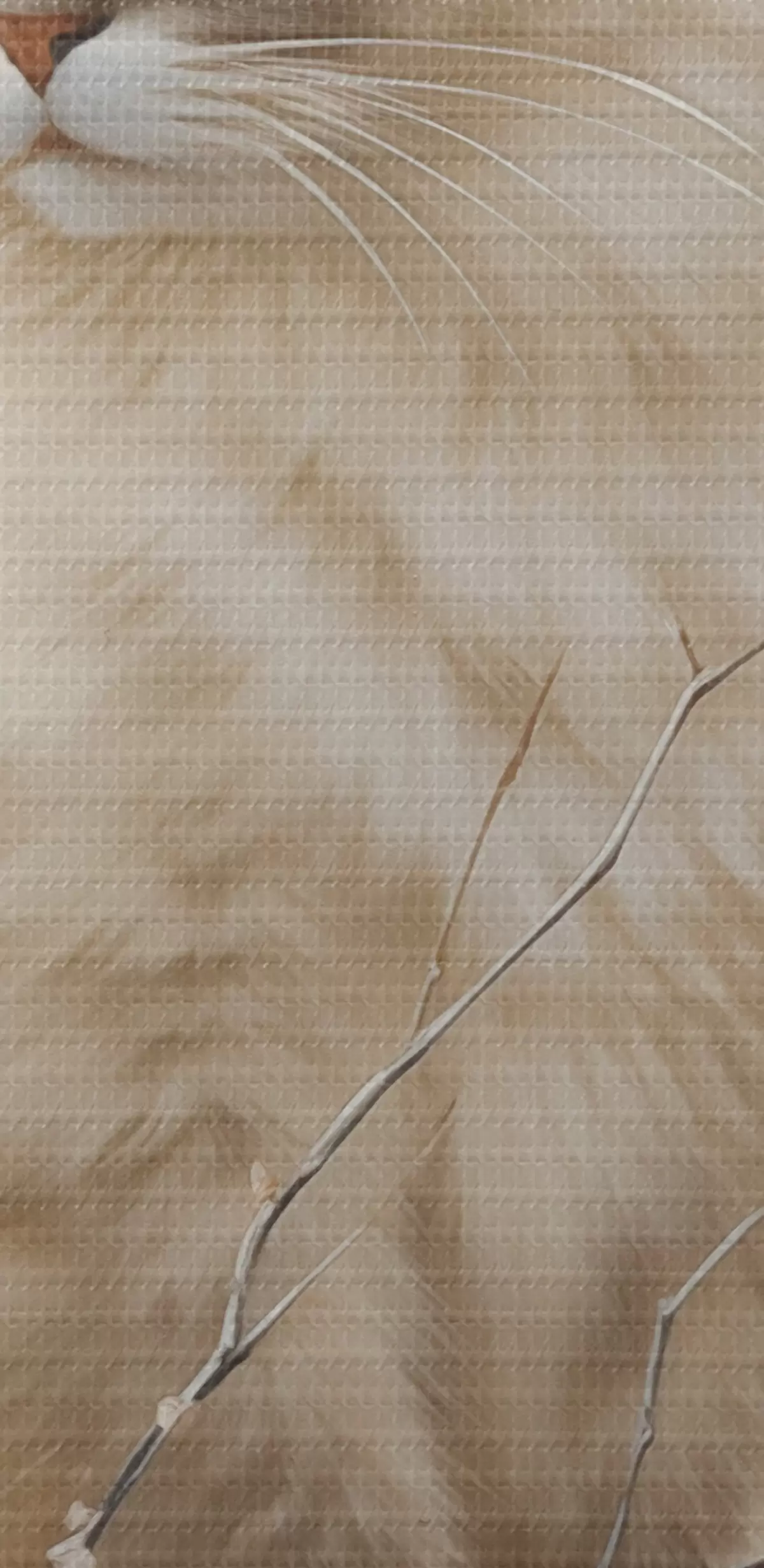 Das Bild kann vorsichtig mit einem trockenen, weichen Tuch oder Schwamm abgewischt werden; es wird nicht empfohlen, feuchte Produkte zu verwenden. Die Verwendung eines feuchten Schwamms ist nur zulässig, wenn das Bild lackiert wurde.