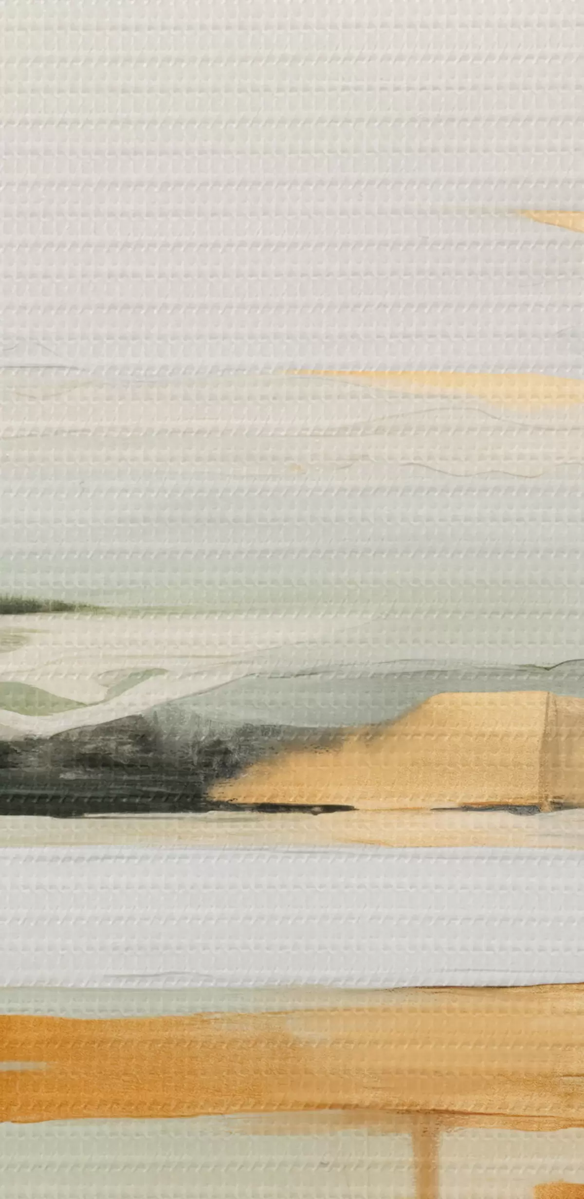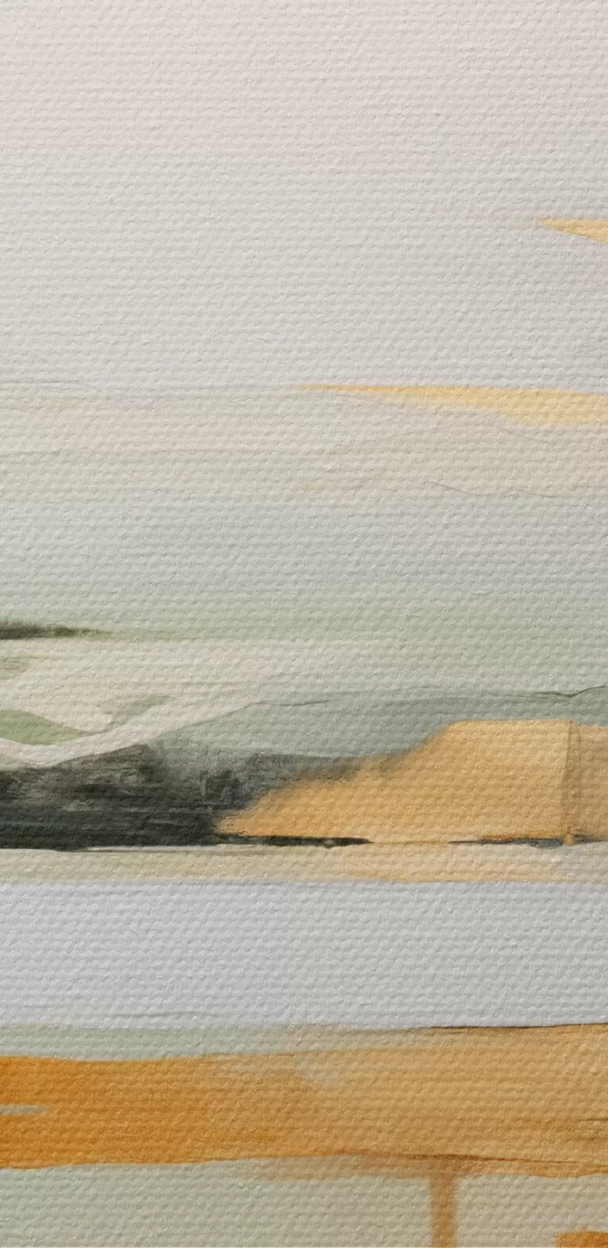 Gemälde Abstrakte Landschaft mit gelben Akzenten, eine minimalistische Komposition aus Land, Wasser und Himmel, mit gedämpften Farben Art. m00877