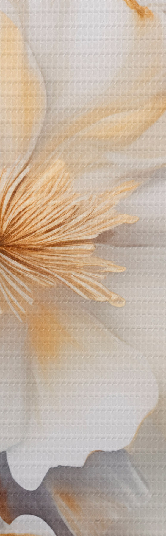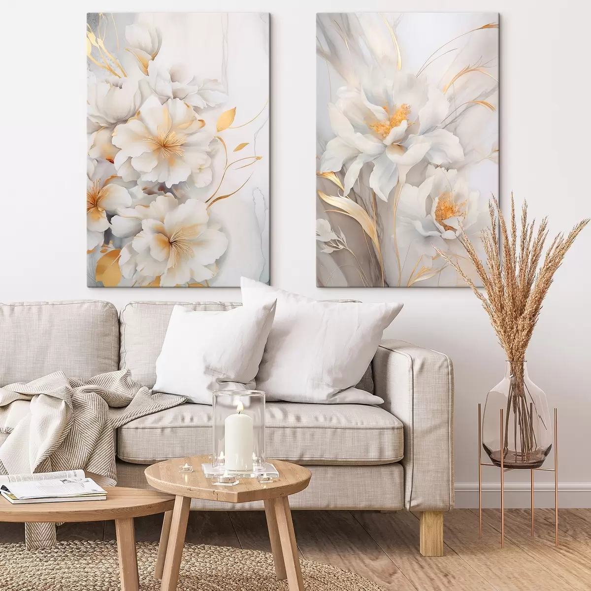 Gemälde Weiße Blüten mit gelben Details, Blütenblätter mit dezenten Schatten, heller Hintergrund mit dezentem Marmoreffekt Art. m00889