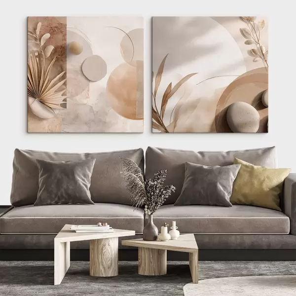 Fototapete Zwei Leinwände mit getrockneten Blättern und strukturierten Formen m00893