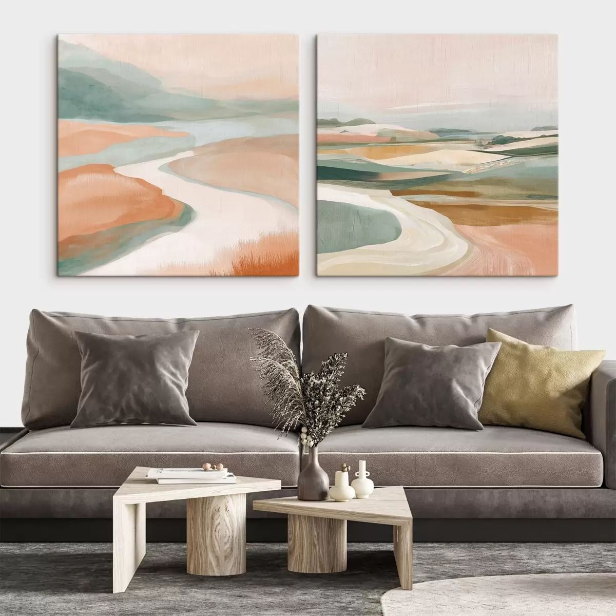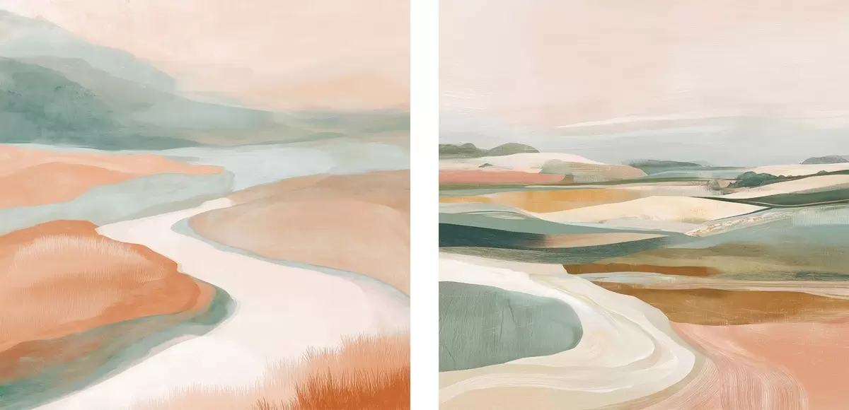 Gemälde Abstrakte Hügel und Fluss in Pastellfarben Art. m00896