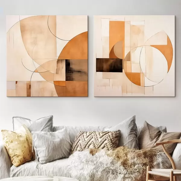 Gemälde Moderne Abstraktion mit Kreisen und Linien in Kaffee-mit-Milch-Farben Art. m00898
