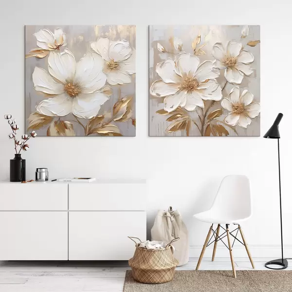 Gemälde Diptychon mit großen Blumen in hellen, warmen Farben Art. m00927