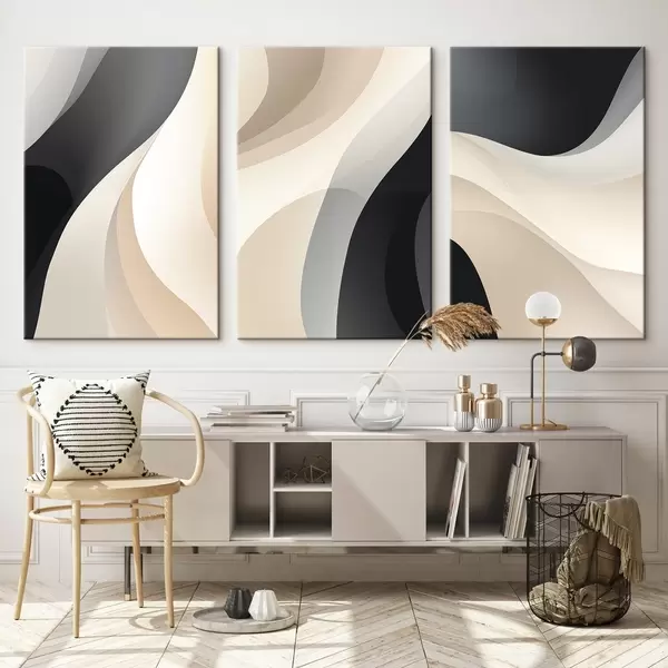 Gemälde Minimale fließende Kurven in Creme, Taupe und Schwarz Art. m00962