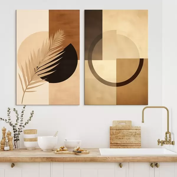Gemälde Terrakotta und beige Geometrie mit Palmblattmotiv Art. m00968