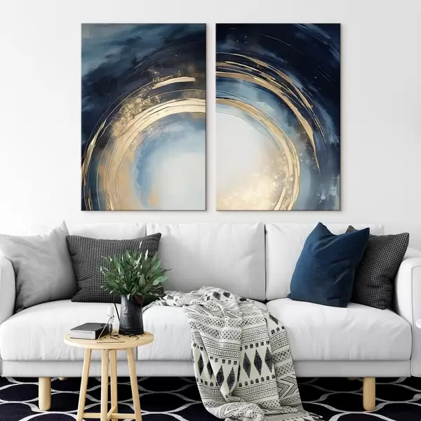 Gemälde Mitternachtsblaues Rundstrichmuster mit metallischen Bögen Art. m00969