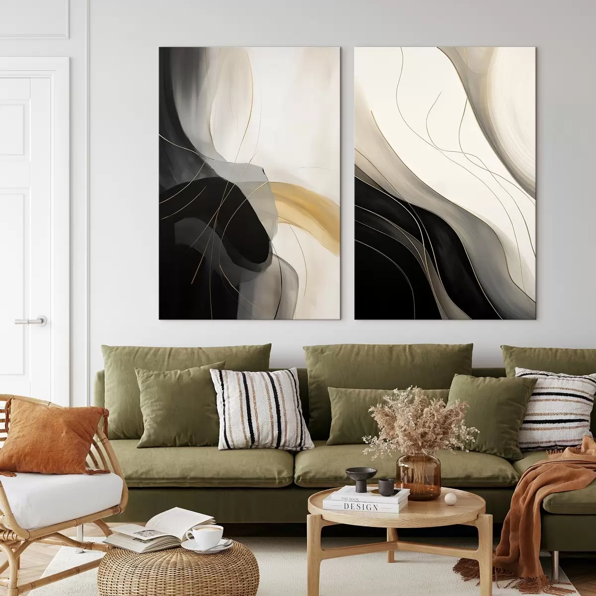 Gemälde Monochrome Kurven mit feinen Metallfäden Art. m00972