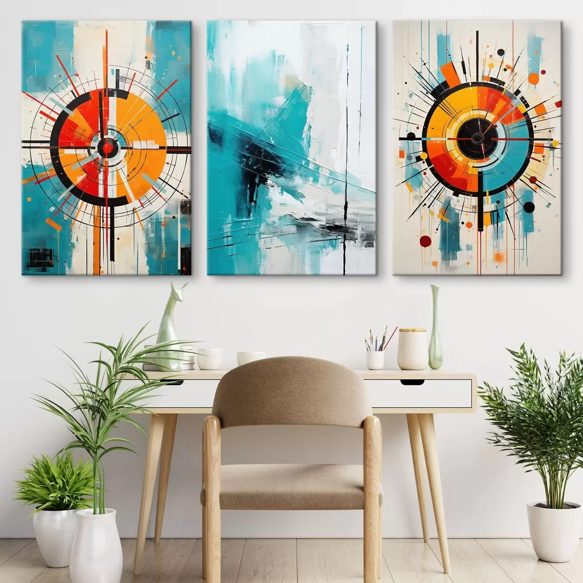 Gemälde Radiales Abstrakt mit türkisfarbenen und orangefarbenen Spritzern Art. m00973