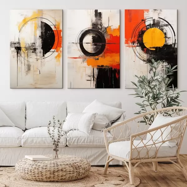 Gemälde Strukturierte Kreise und kräftige Striche in Schwarz, Ocker und Orange Art. m00974