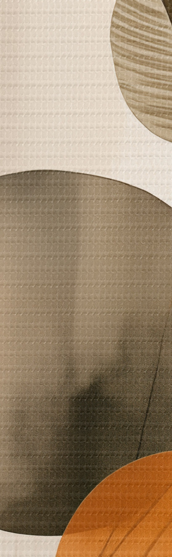 Fototapete Abstrakte Malerei-Imitation mit orangefarbenen und grauen Kreisen, Blättern und Zweigen, moderner Stil, Aquarelleffekt m01009