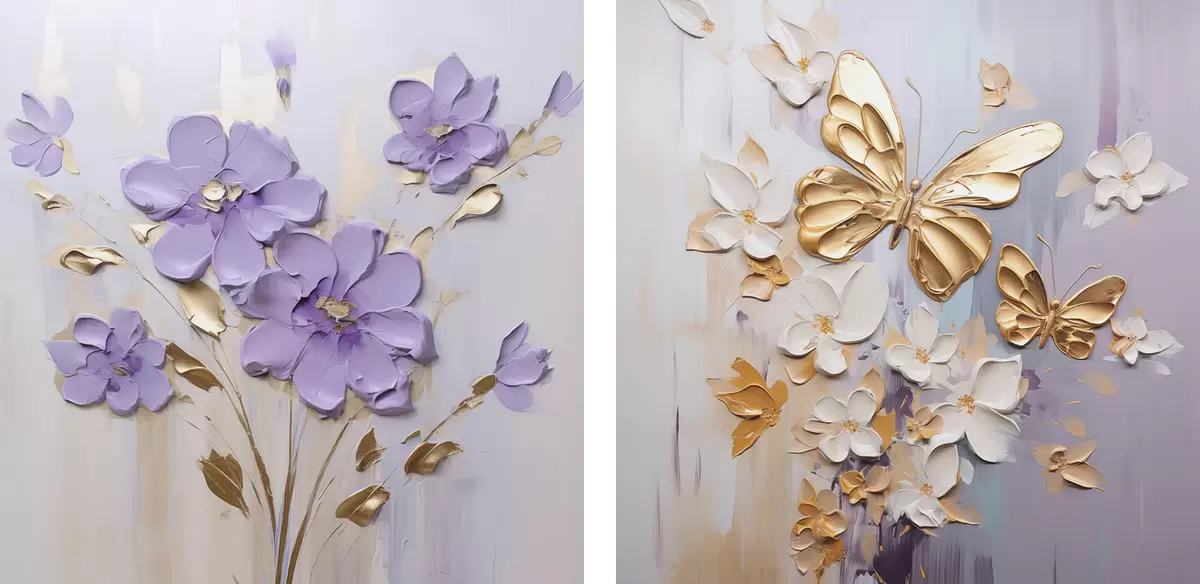 Gemälde Schmetterlinge und Blumen Imitationsmalerei Art. m01046