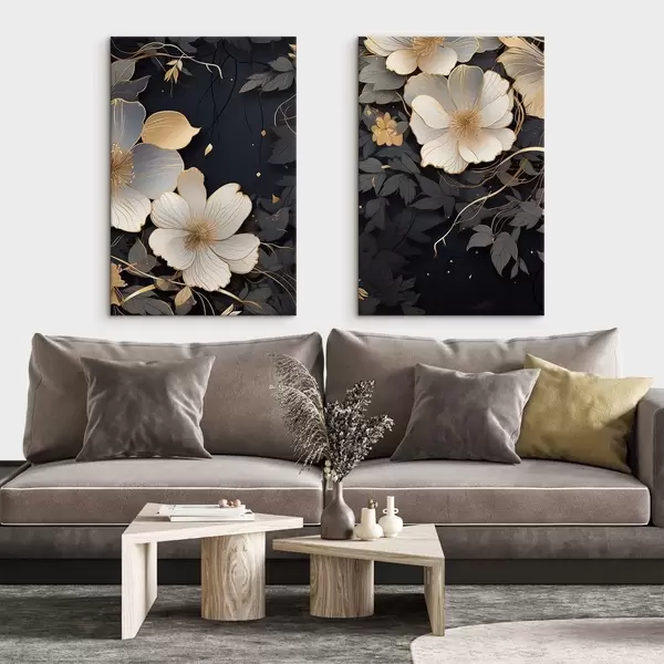Gemälde Große abstrakte Blumen auf dunklem Hintergrund Art. m01066