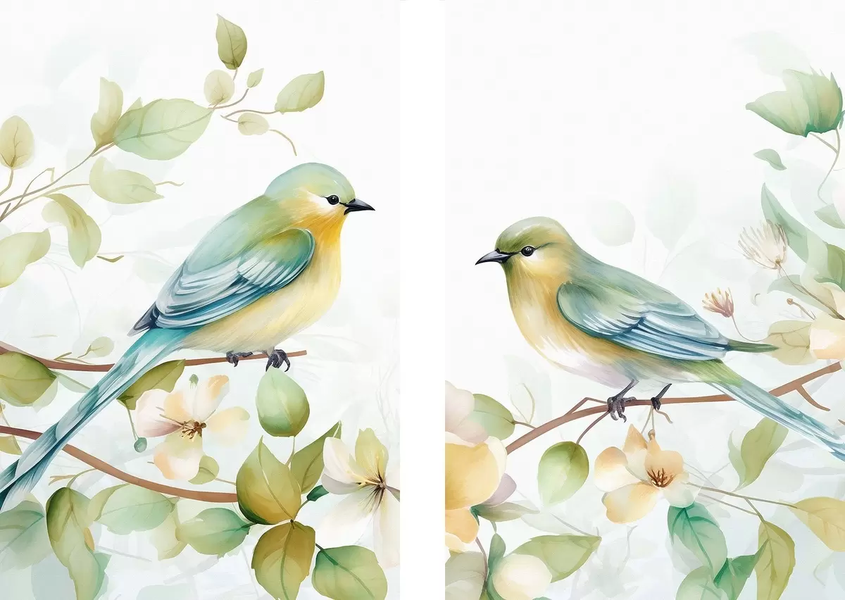 Fototapete Zwei Meisen auf Jasminzweigen m01069