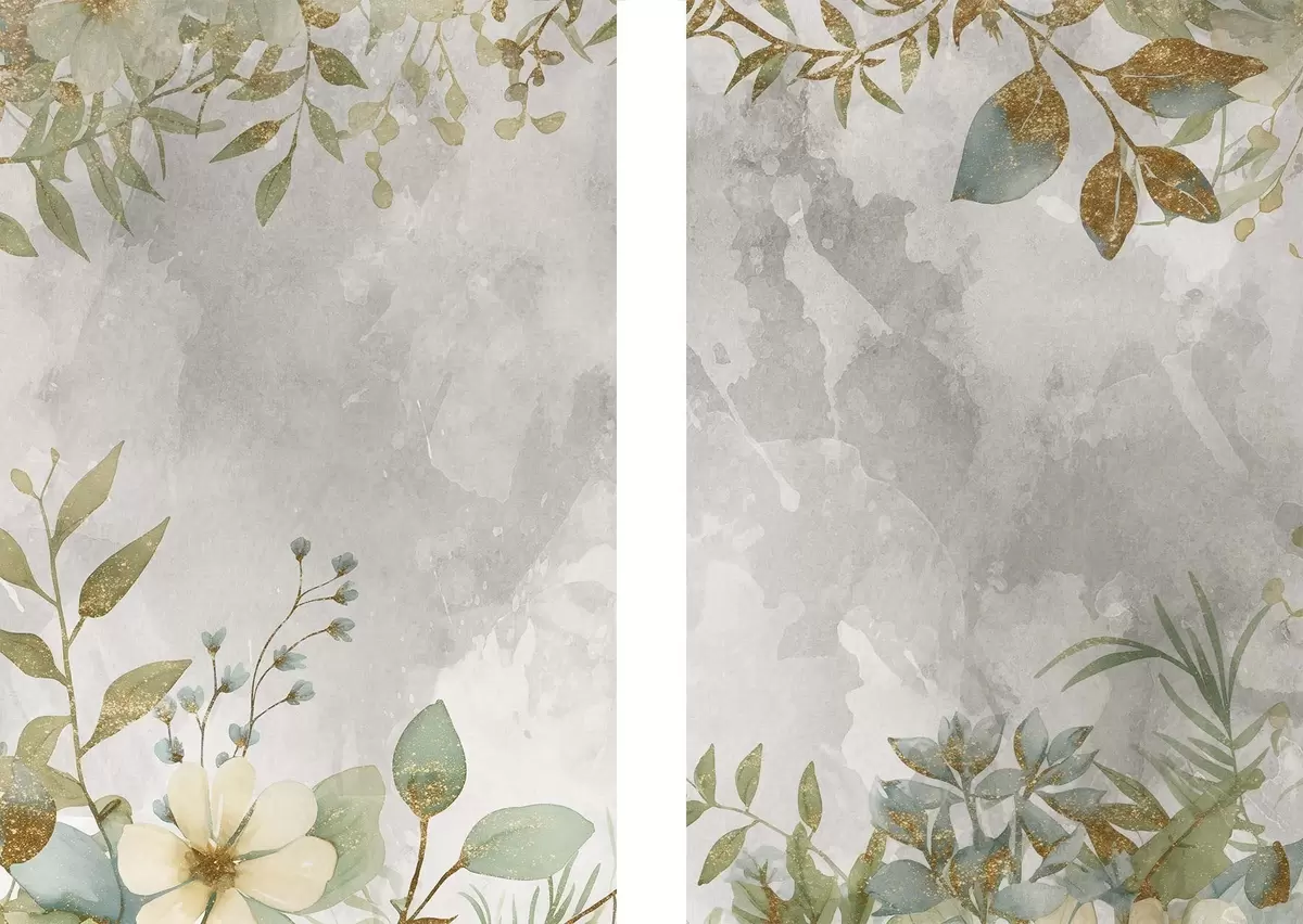Fototapete Zarte Pflanzen auf hellgrauem Hintergrund m01070