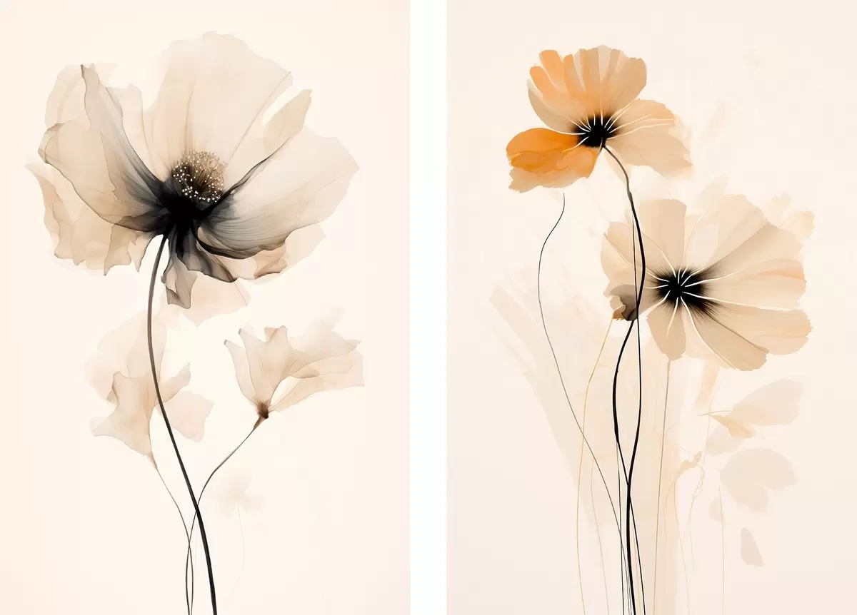 Gemälde Helle Aquarell-Mohnblumen mit weichen Schatten und luftigem Raum Art. m01091